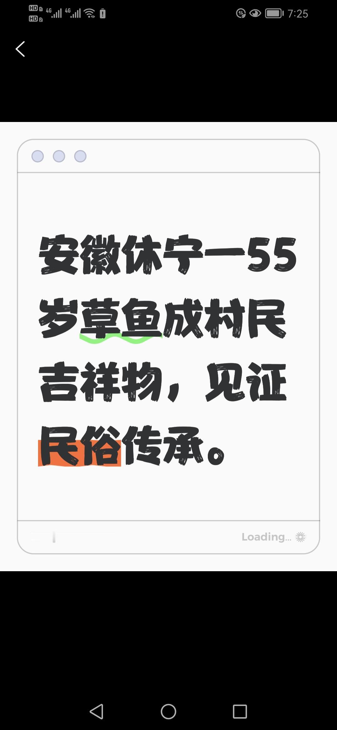 在安徽休宁县梓坞村,一条55岁的草鱼即将迎来它的“生日派对”,这背后隐藏着怎样的故事? 在安徽省休宁县梓坞村,一条草鱼已经活了55岁,村民们决定为它庆祝“生日”。这条草鱼见证了当地居民的生活变迁,也成为了村里的传奇。当地有个风俗,为刚出生的孩童投放鱼苗,寓意“如鱼得水、生生不息”。这条草鱼正是汪长生大女儿出生时投放的,如今它不仅是黄山市鱼龄最长、体重最大的人工养殖草鱼,更是村民们心中的吉祥物[1]。这条长寿草鱼的故事不仅体现了当地独特的民俗文化,还展示了人们与自然和谐共处的美好愿景。每年,村民们都会聚集在一起,用各种方式表达对这条草鱼的喜爱和尊敬[2]。这一习俗在当地已经流传了多年,不仅增进了邻里间的感情,也让村民们更加珍视这份珍贵的自然遗产。