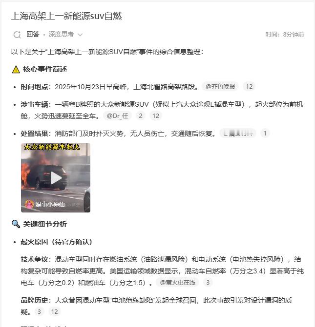 苏州一电车发生燃爆上海高架上一新能源SUV自燃大早上的看到两条新能源车的事故··
