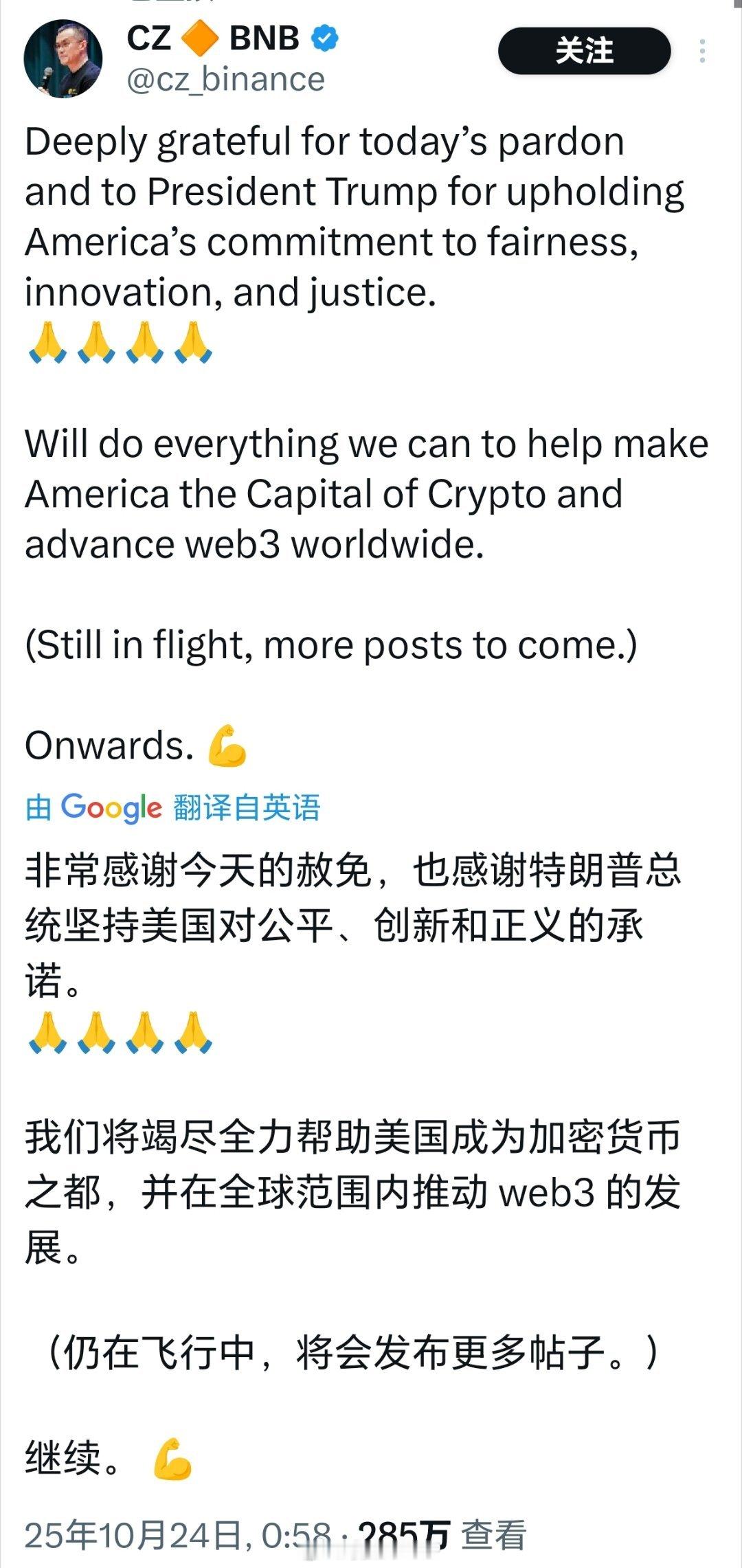消息公布后,赵长鹏发文写道:非常感谢今天的赦免,也感谢特朗普总统坚持美国对公平、创新和正义的承诺。