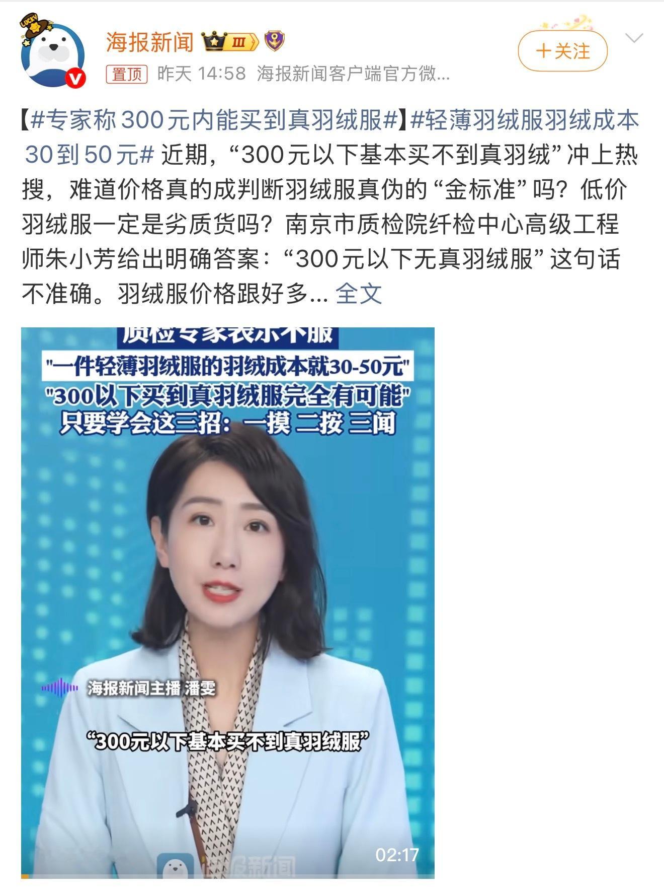 轻薄羽绒服羽绒成本30到50元所以,我一般在夏天的时候去买羽绒服,要不就转投棉服