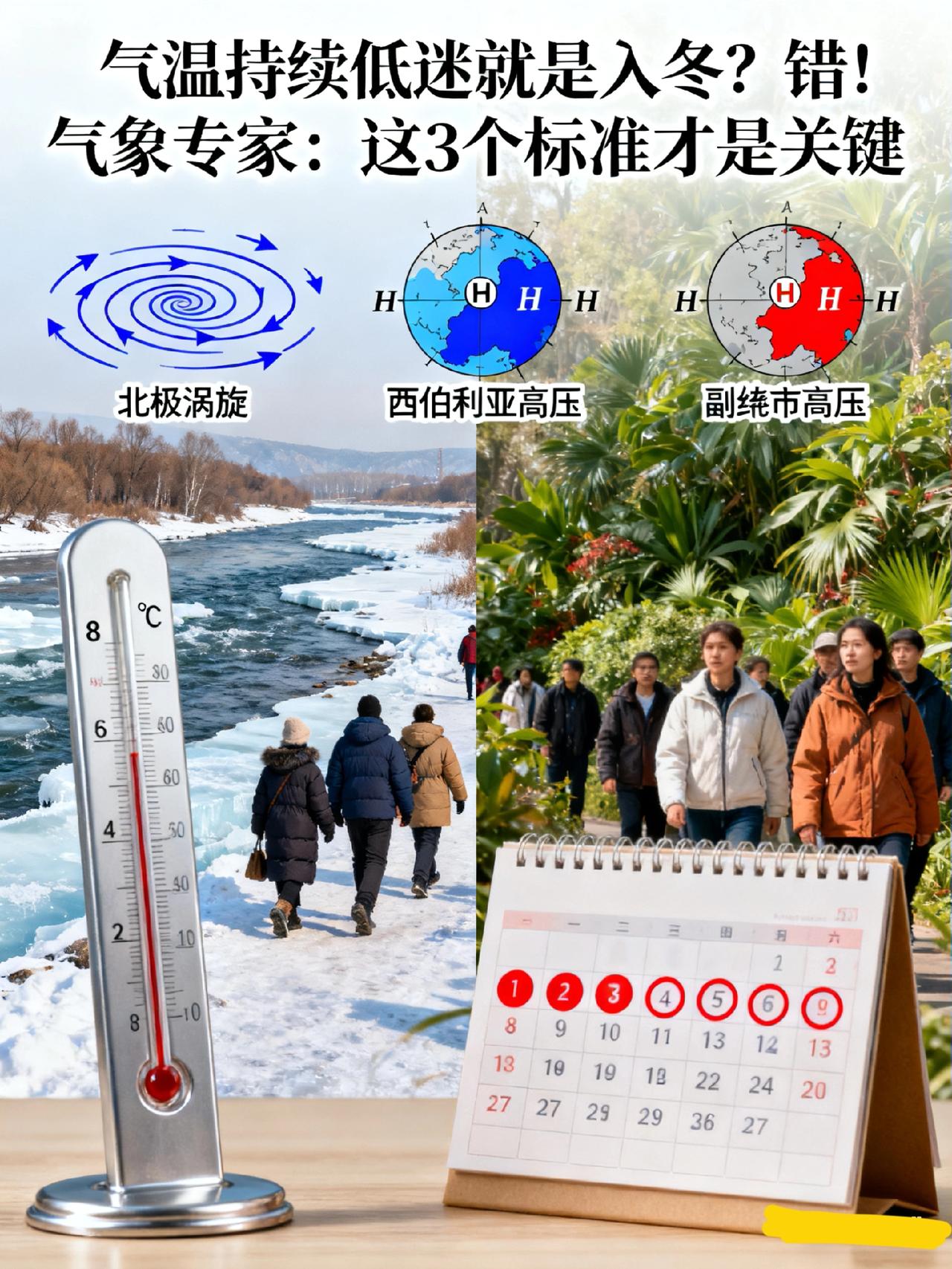 气温持续低迷就是入冬?错!气象专家:这3个标准才是关键 “冻得直穿羽绒服,冬