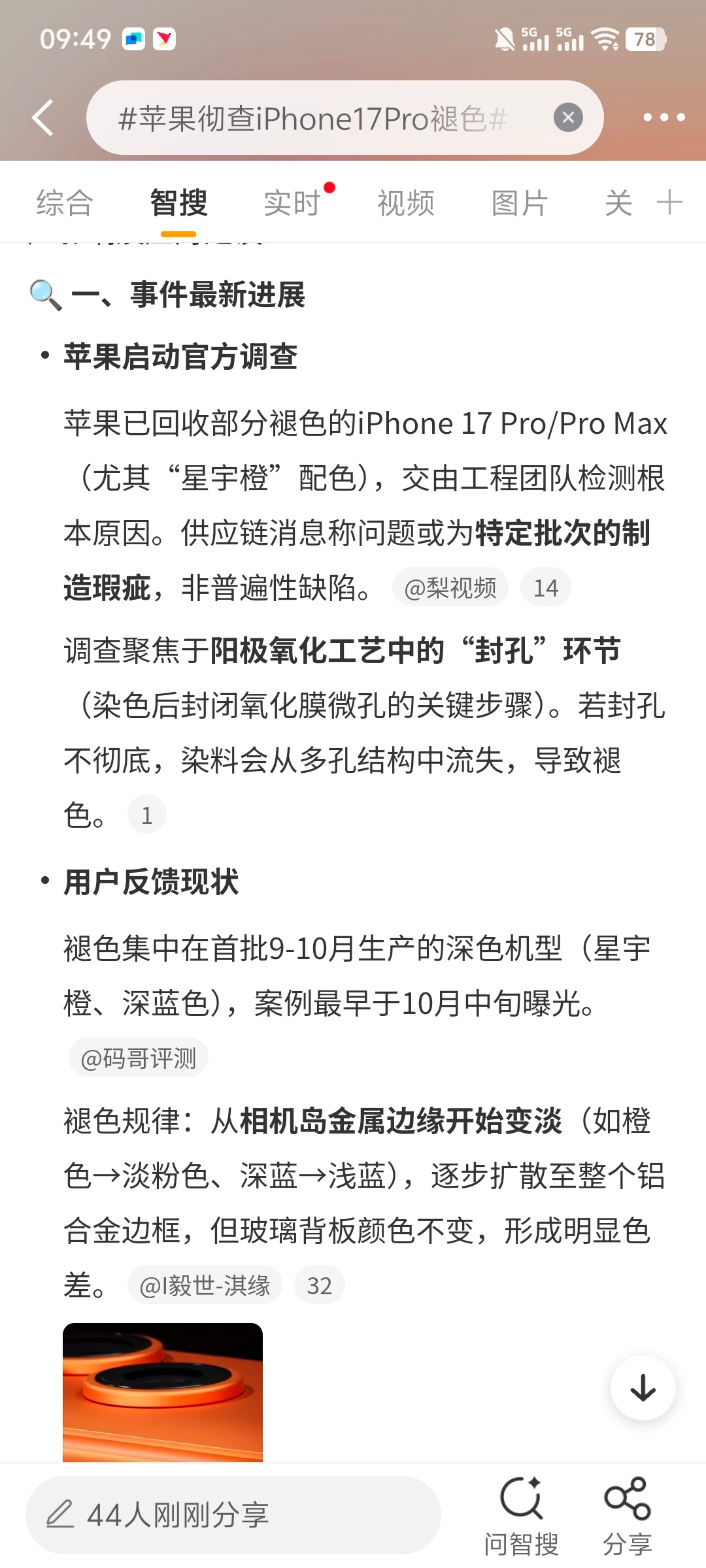 苹果彻查iPhone17Pro褪色笑死!阿果这品控[捂嘴哭]