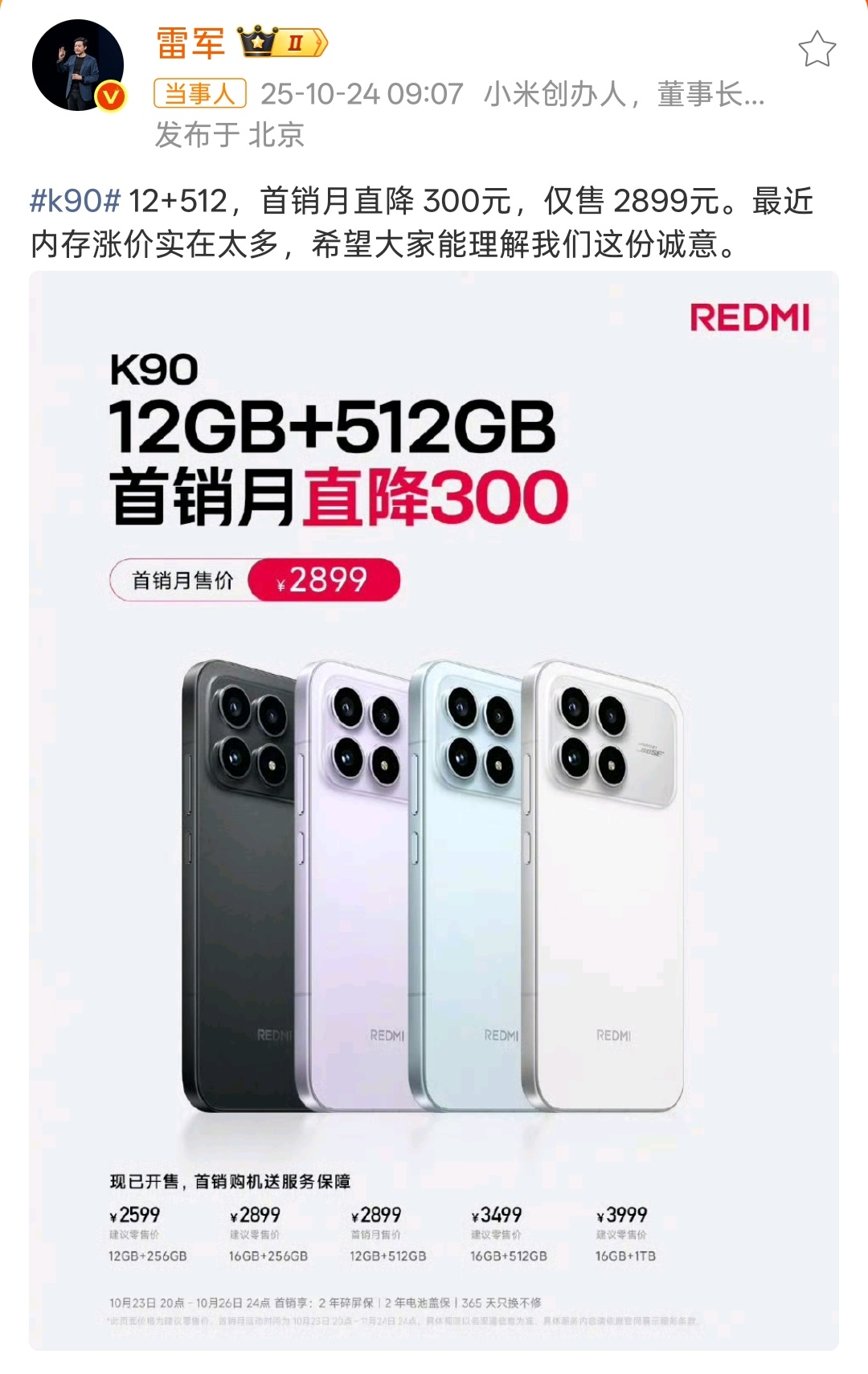 雷军回应K90定价首销直接降价300,12+512GB也适合多数用户,这配置和这