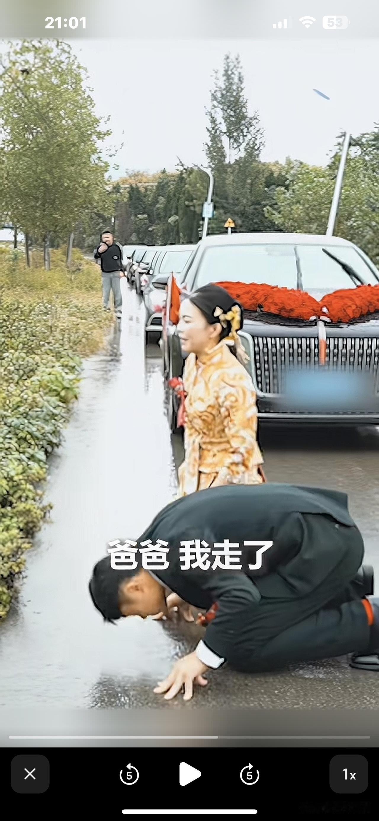 太令人动容落泪了! 近日,江苏徐州一位姑娘在出嫁途中路过父亲的坟地。彼时天空正下着雨,地面十分潮湿。可姑娘顾不上这些,带着新郎从车上下来,二人双双朝着父亲坟地的方向跪下,给已故的父亲磕了好几个响头。 磕完头,新娘一句“爸爸,我走了爸爸”,让在场所有人为之动容。想必新娘的父亲在天堂看到女儿出嫁,也会倍感欣慰。 子欲养而亲不待,人世间的遗憾实在太多。希望新郎在今后的日子里好好对待这位没有父亲的新娘,也祝愿这对新人幸福一生。 (图片来源:人民日报)