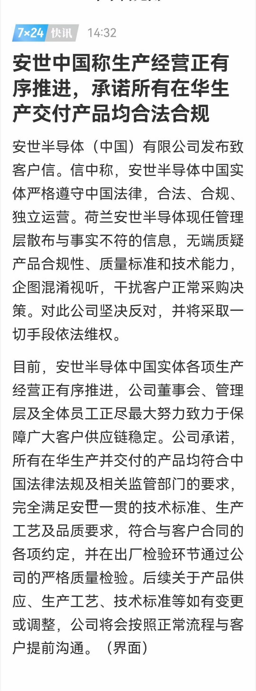 10月23日,安世半导体中国有限公司发布声明称,近期荷兰总部单方面免去张秋明销售市场部副总裁职务的决定,在中国法域下不发生法律效力。然后安世中国恢复向国内企业供货,而安世荷兰却无法向欧洲和日本车企供货。目前斗法的阶段性结果就是,安世荷兰先动手,扯下来一件外业,而安世中国转身把外衣脱下来丢给安世荷兰,转身直对安世荷兰眉心打了一勾长拳,把安世荷兰打得晕头转向、眼冒金星。不过,这个斗法的过程还有点长,暂时还结束不了。