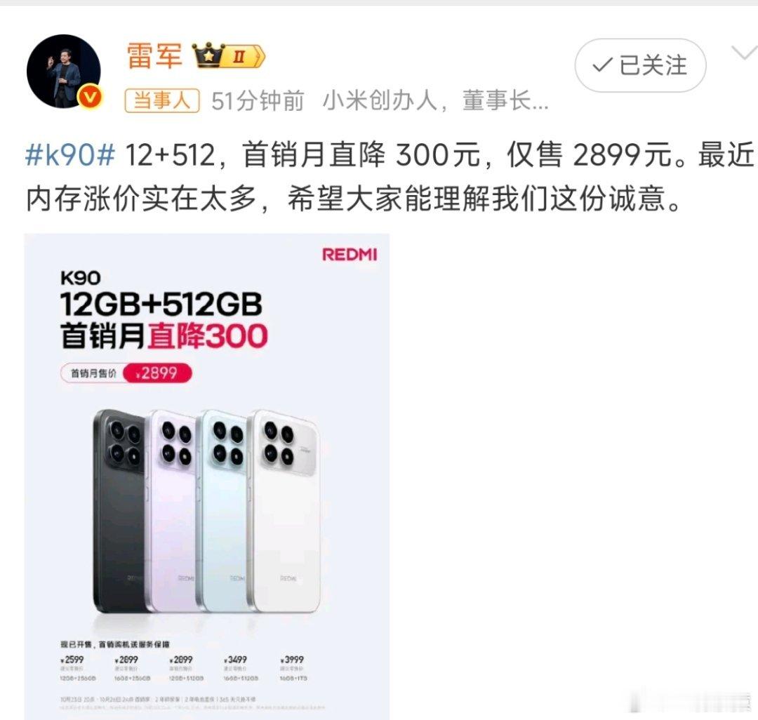 雷军回应K90定价雷军表示最近内存涨价实在太多,希望大家能理解我们这份诚意。你们