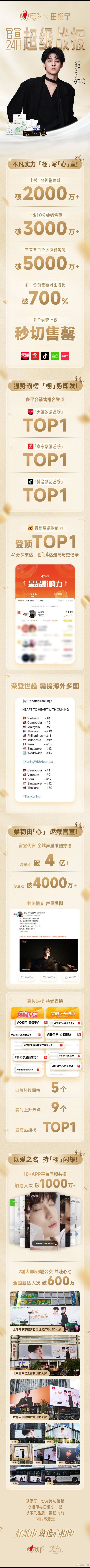 田栩宁心相印官方战报🈶官宣1分钟2000万,首日销售额5000万