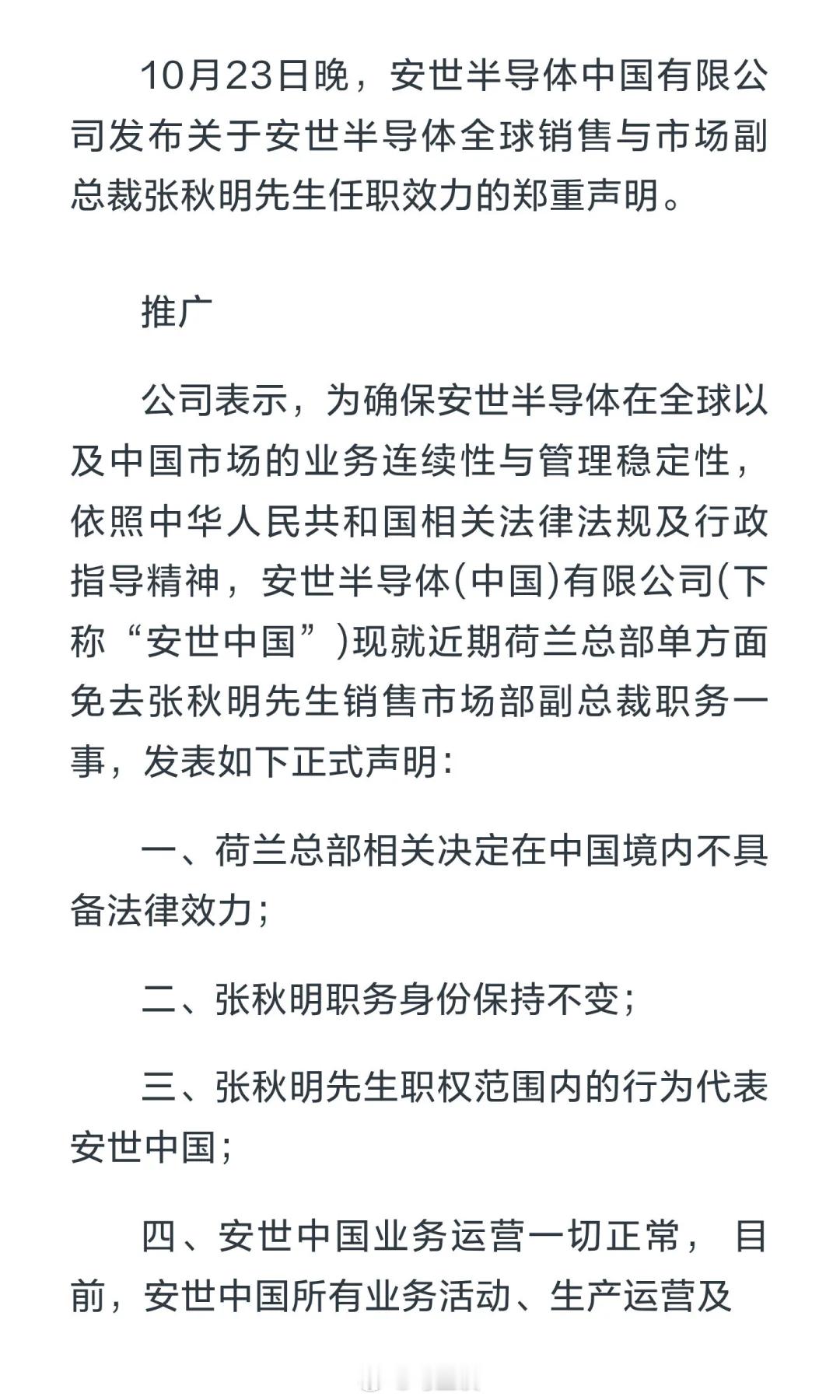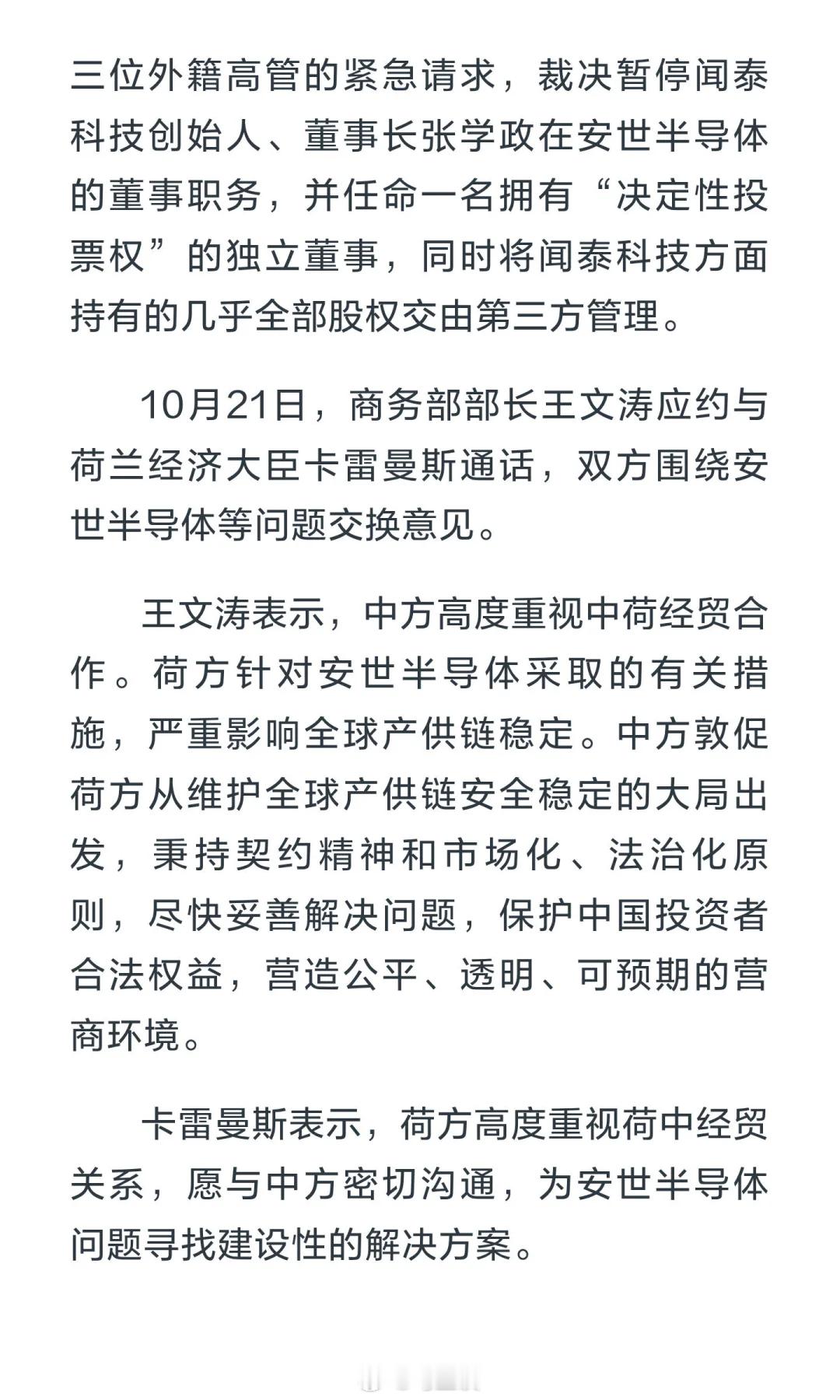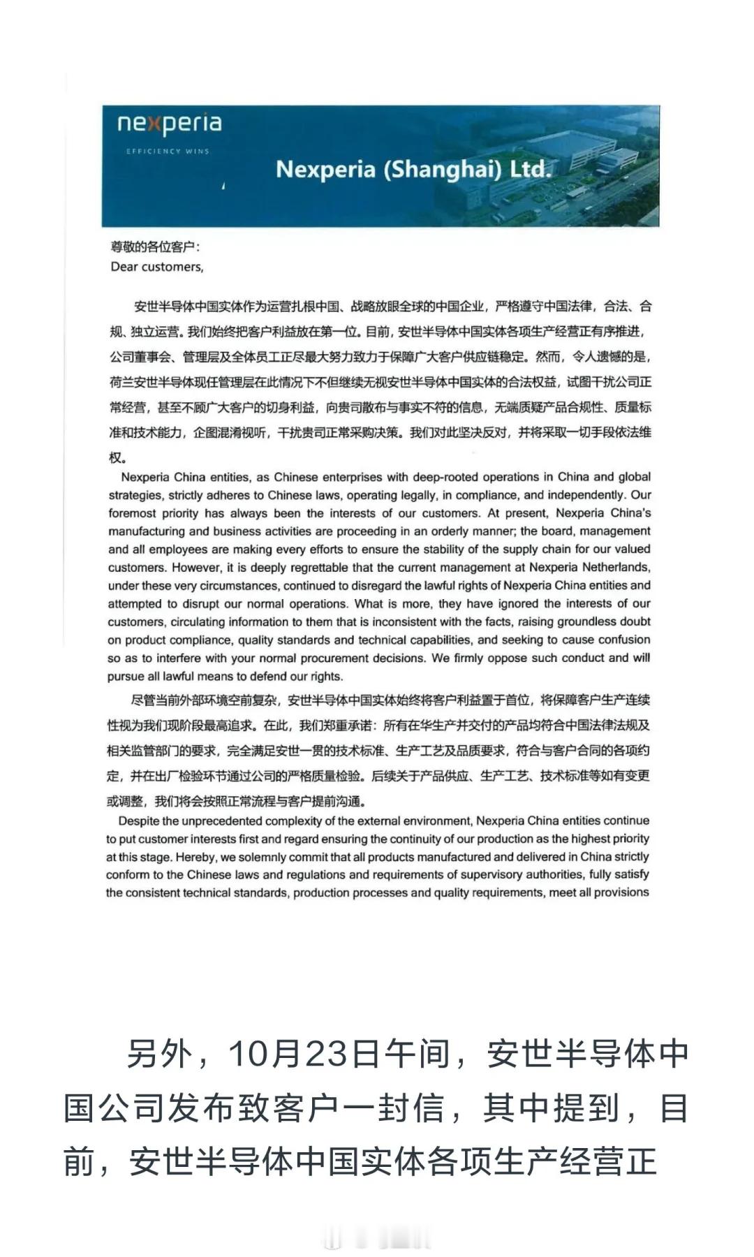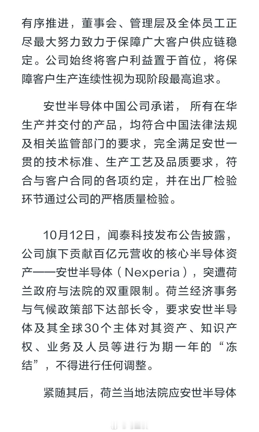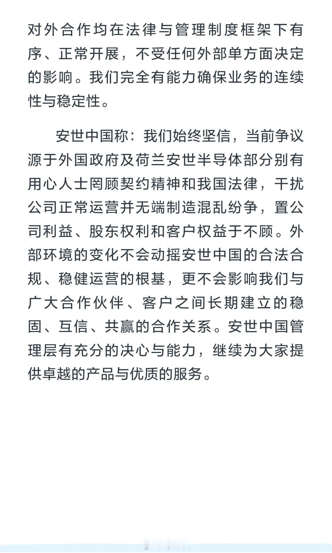 安世中国声明荷兰总部决定在中国无效 好!硬气!荷兰和欧洲是想逃避抢劫的事实,把中国摁在谈判桌上,但是中国偏不!以牙还牙!荷兰这种loser国家,真的是一日海盗,终生海盗!