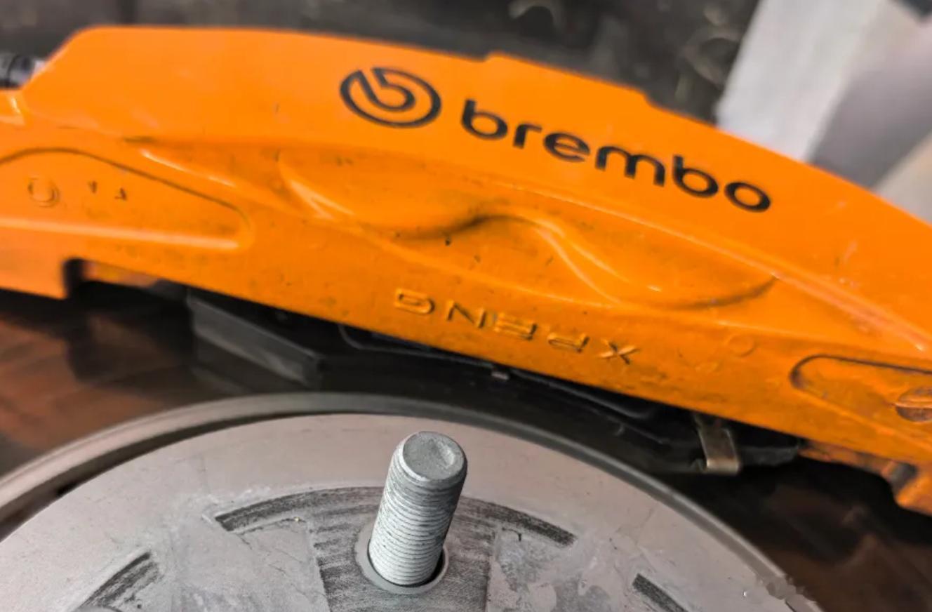 小鹏P7全系标配370毫米大尺寸通风刹车盘,厚度达到32毫米,优于同级的28-30毫米均值。全系标配布雷博对置四活塞刹车卡钳,实测连续26次“百公里到零”制动,能保持不错的效果,高热容设计保证赛道级频繁制动不会出现明显“脚软”。值得一提的是,这辆小鹏P7采用“鸳鸯胎”设计,也就是轮胎“前窄后宽”,前轮宽度245毫米,后轮宽度275毫米,有助于提升后驱抓地力。