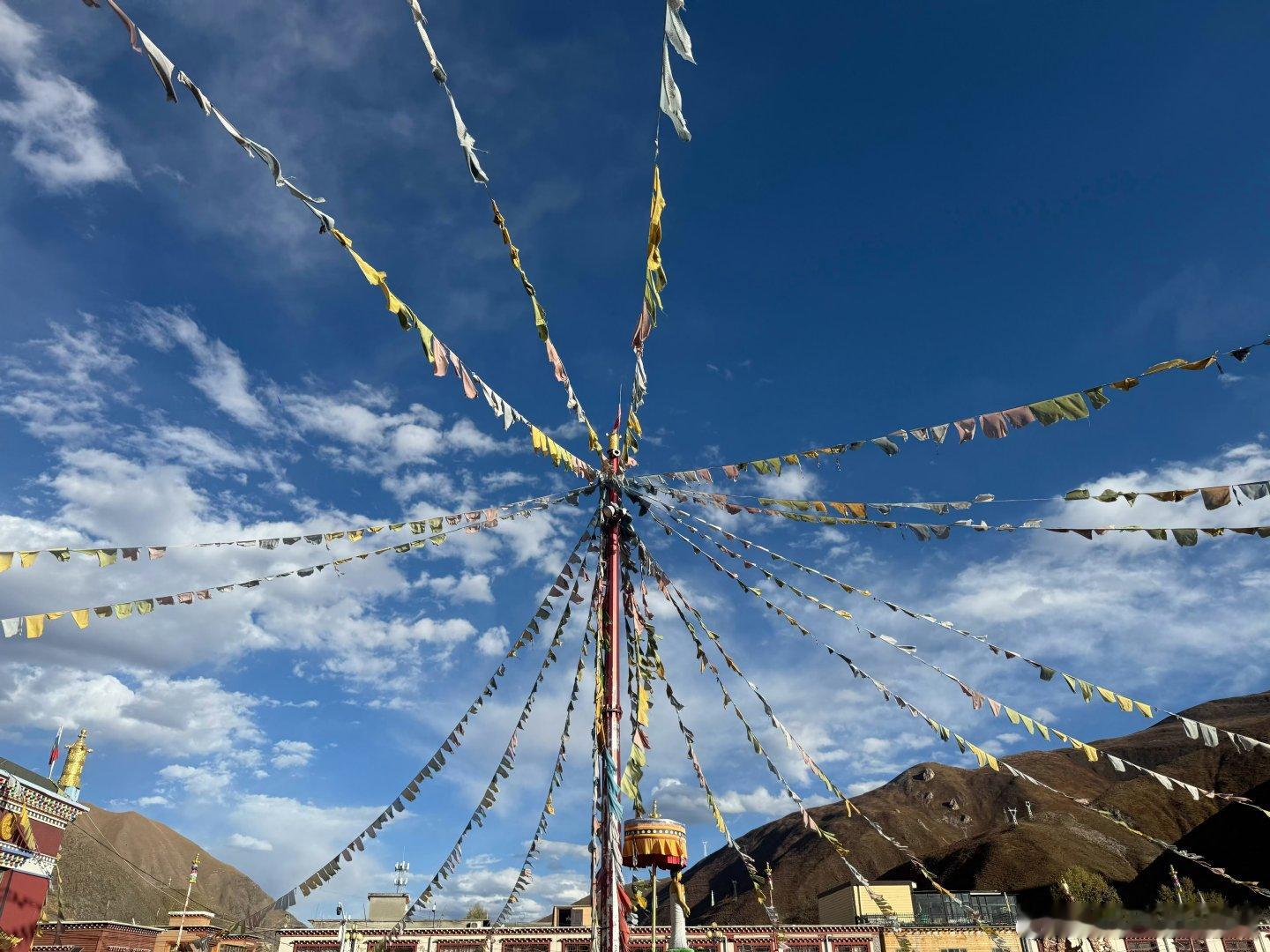 杨紫分享手机相册live图杨紫手机相册live图杨紫分享手机相册live图,戴着口罩也能看出她的开心,背景里的藏式建筑和经幡阵,也太适合打卡了吧。