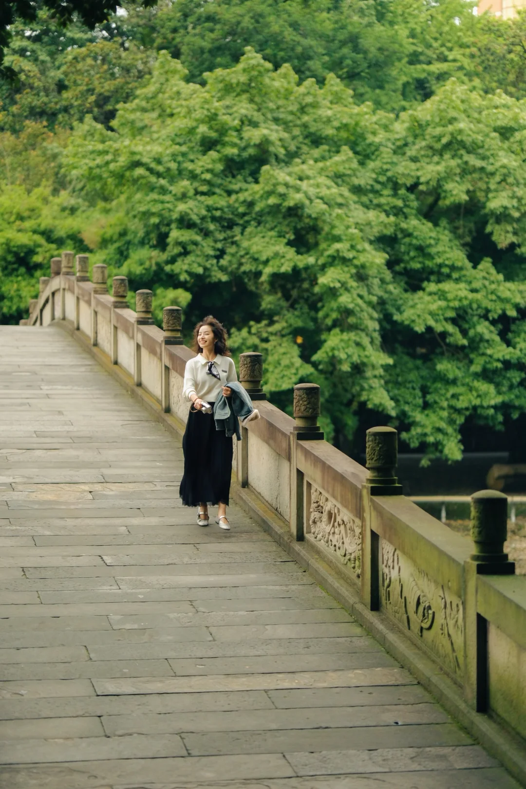 两片区域中间有座石桥连接,桥体带着80年代的复古感,两头还被漂亮的树林环绕。站在桥上拍照很有氛围感,还能远眺对面的古塔,风景和出片率双在线!