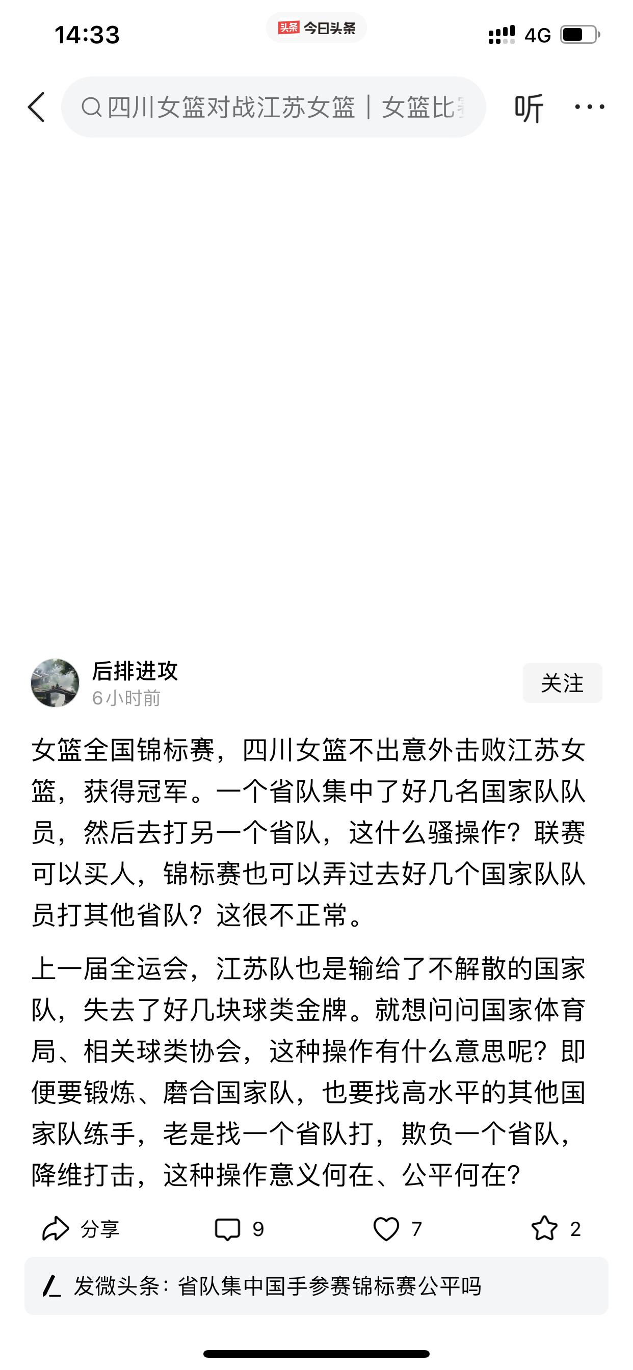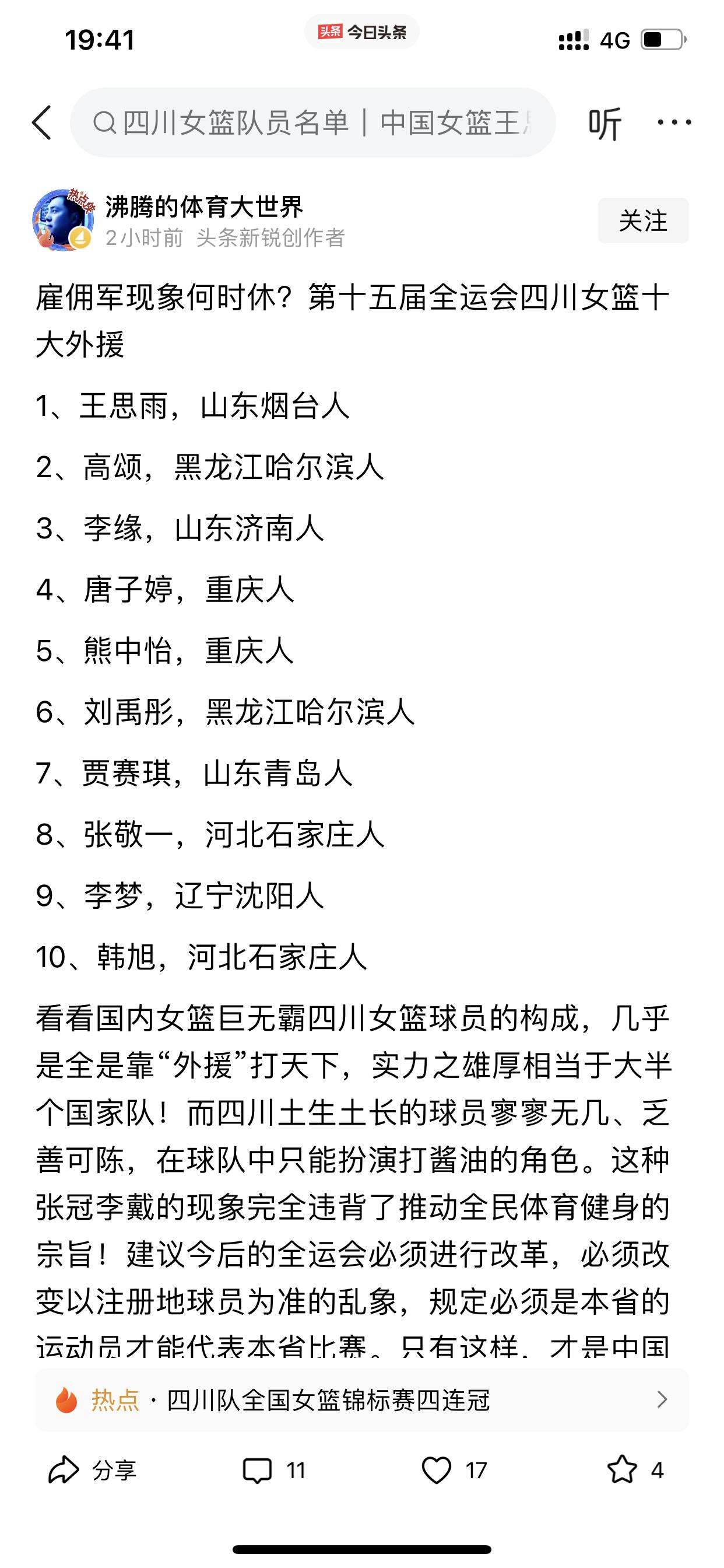 不知针对四川女篮何时休? 还是说喜欢故意搞事情? 四川女篮阻碍谁夺冠了吗?没啊!在四川女篮崛起之前,谁曾是总冠军得主? 是曾经的八一女篮,是辽宁女篮、是山西女篮,是北京女篮,是广东女篮、是内蒙古女篮 也没有四川女篮呀?四川女篮不就是得了两届总冠军啊,怎么就那么大的敌意? 我一直在网上说的那句话,没有人有资格要求你必须喜欢谁 但是你不能不喜欢谁,就要刻意的去针对人家 然后还要恶心人家? 最后发现招来更多的人恶心自己,这样就在网上形成一个恶性大循环,如果人数够多,影响够大,就容易形成所谓的地域性不良网络影响! 总之,不管你喜欢哪支球队,难道你喜欢一刷网络,就是针对你喜欢的球队的恶心之言吗?