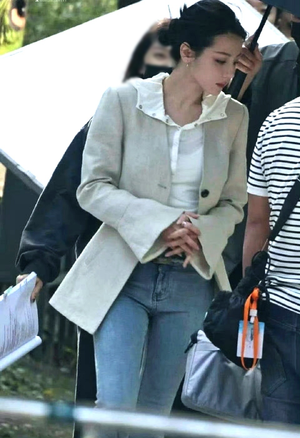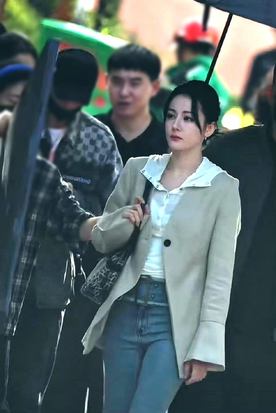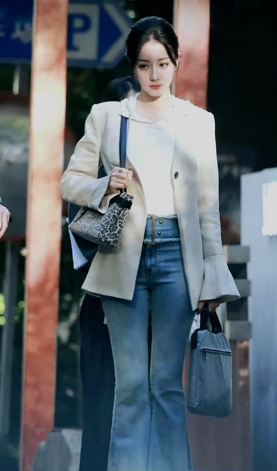 迪丽热巴西装造型 新剧《虽然不能同时拥有一切》路透!热巴身穿米色廓形西装➕牛仔裤,这身造型看起来干练又洒脱。淡妆盘发完美凸显出她优越的立体骨相,这侧颜线条,真的被夸“美神降临”一点都不过分!现在已经开始期待“卫蓝”的故事了!迪丽热巴卫蓝路透