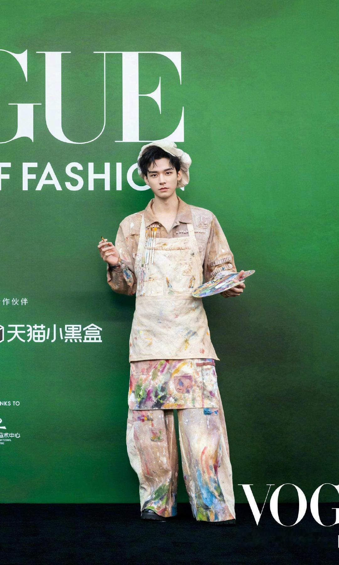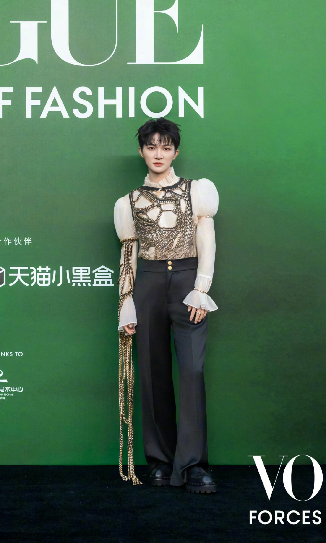 张晚意|今日造型出图,印花衬衫搭配同色系长裤,简约大方。值得注意的是张晚意用天然