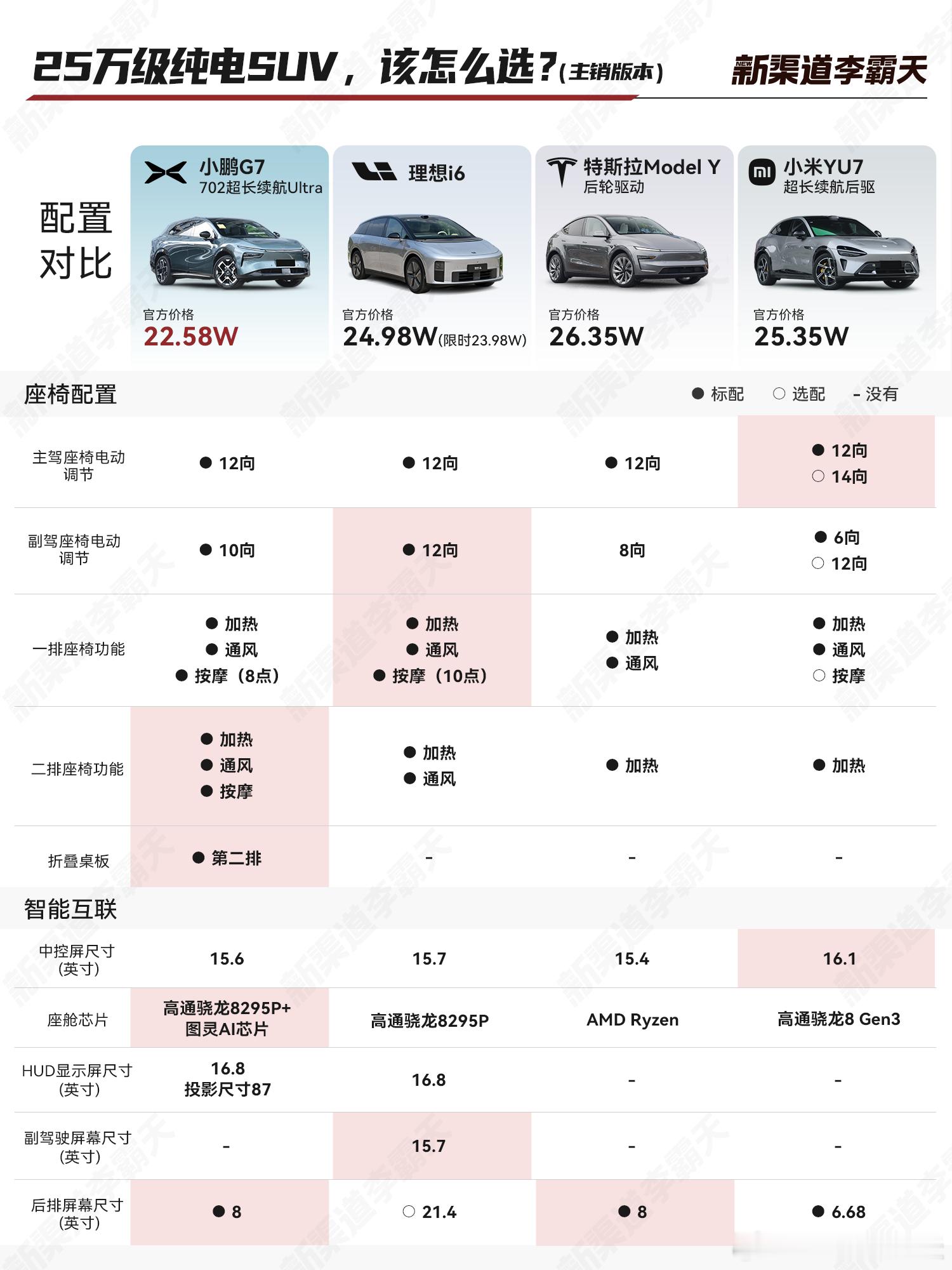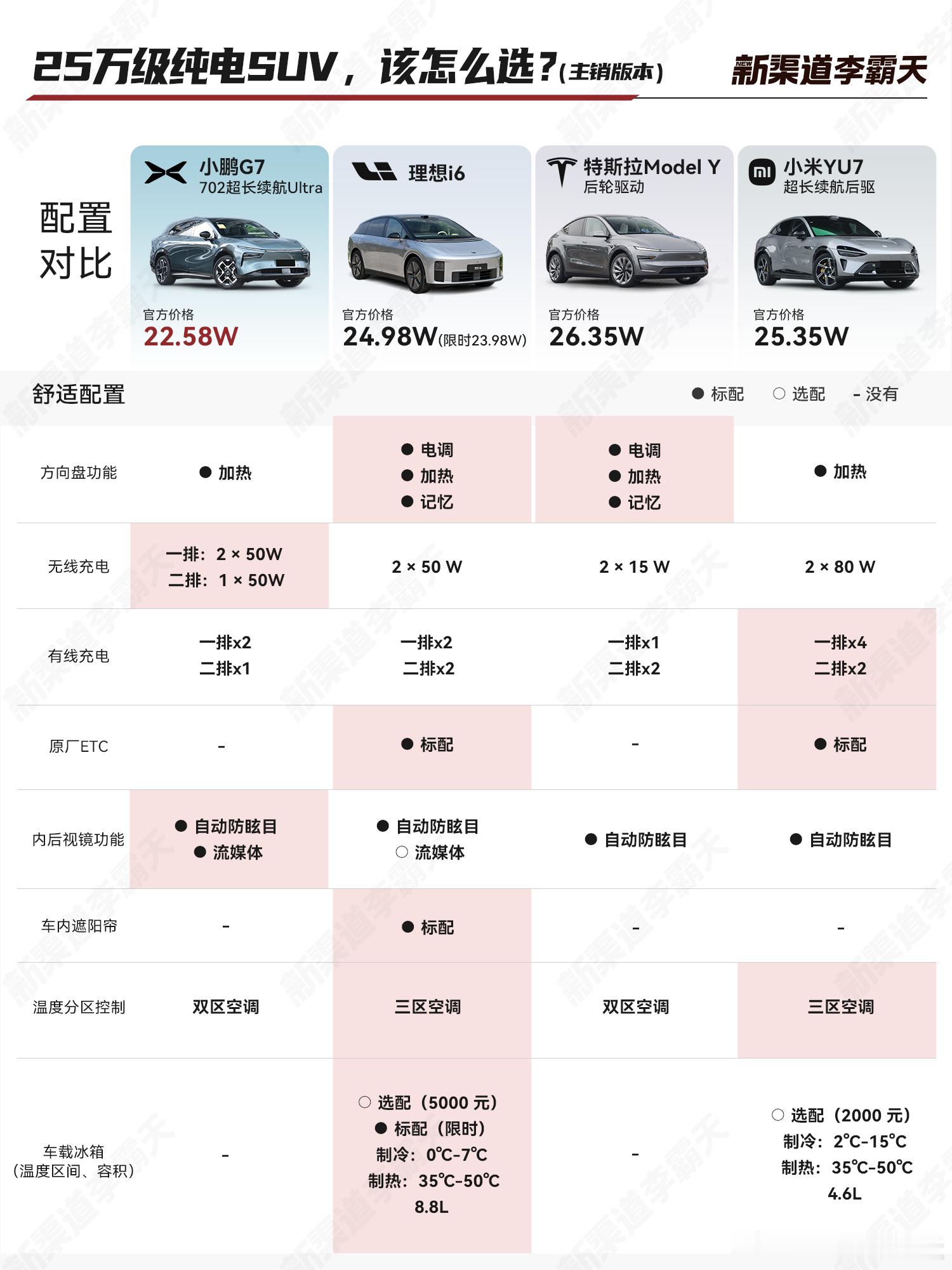 图家用性价比冲 G7|要舒适安全选 i6|要性能外观选YU7|重能耗和品牌选Model Y