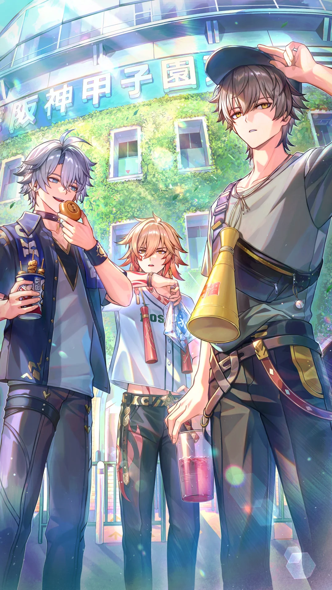 「兵库县在为夏日之梦应援中…众人正沉醉于甲子园的氛围中」 (白厄、万敌、穹) 画师:voyager_1126 「正在游览神户北野异人馆街的三人组。」 (杰帕德、佩拉、玲可) 画师:syooo_gd4 「泡温泉放松一下…?欢迎来到神户」 (缇宝、藿藿、白露) 画师:koup_q(X) 「在神户港的片刻时光」 (昔涟、风堇、符玄) 画师:kotatiyu