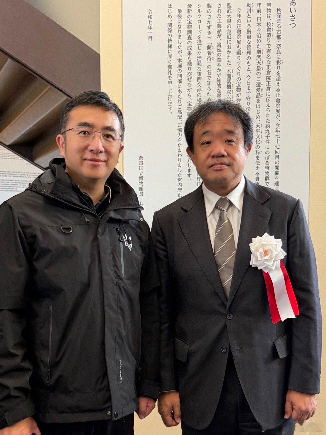 跟我合影的两位剪彩者是奈良国立博物馆的井上馆长,以及宫内厅正仓院事务所的饭田所长。