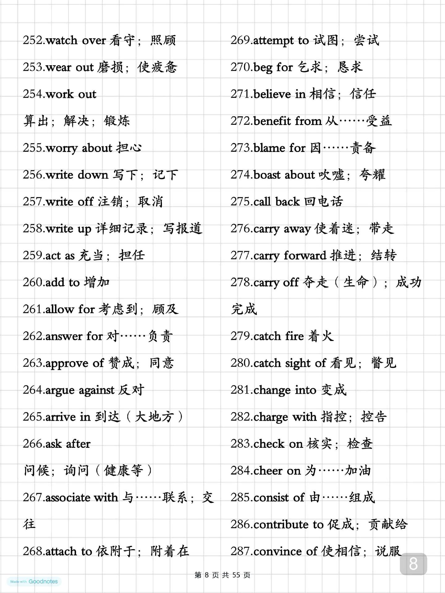 英语完形填空常考的1500个短语,基本要考的短语都在这里了,整理得非常...