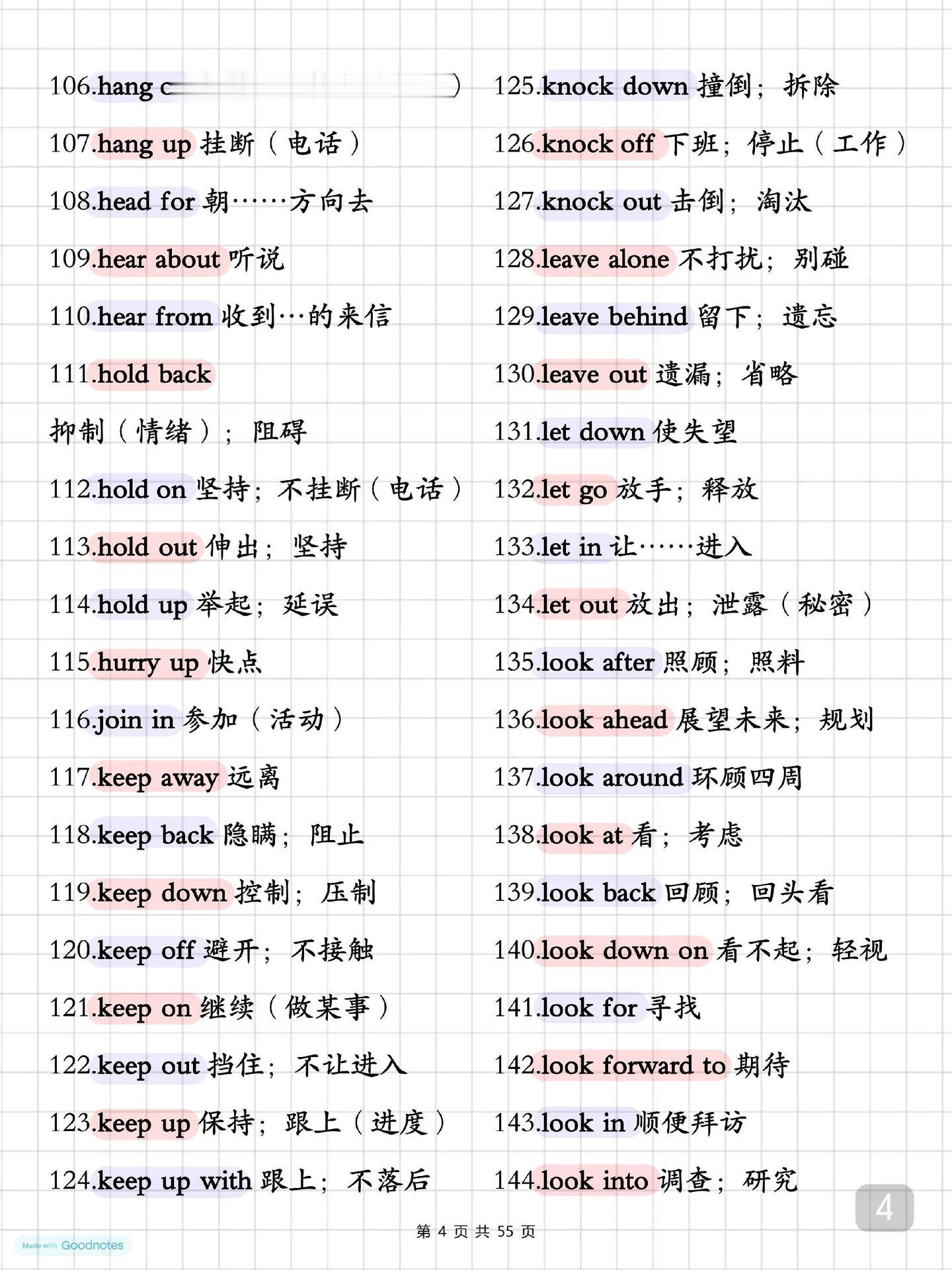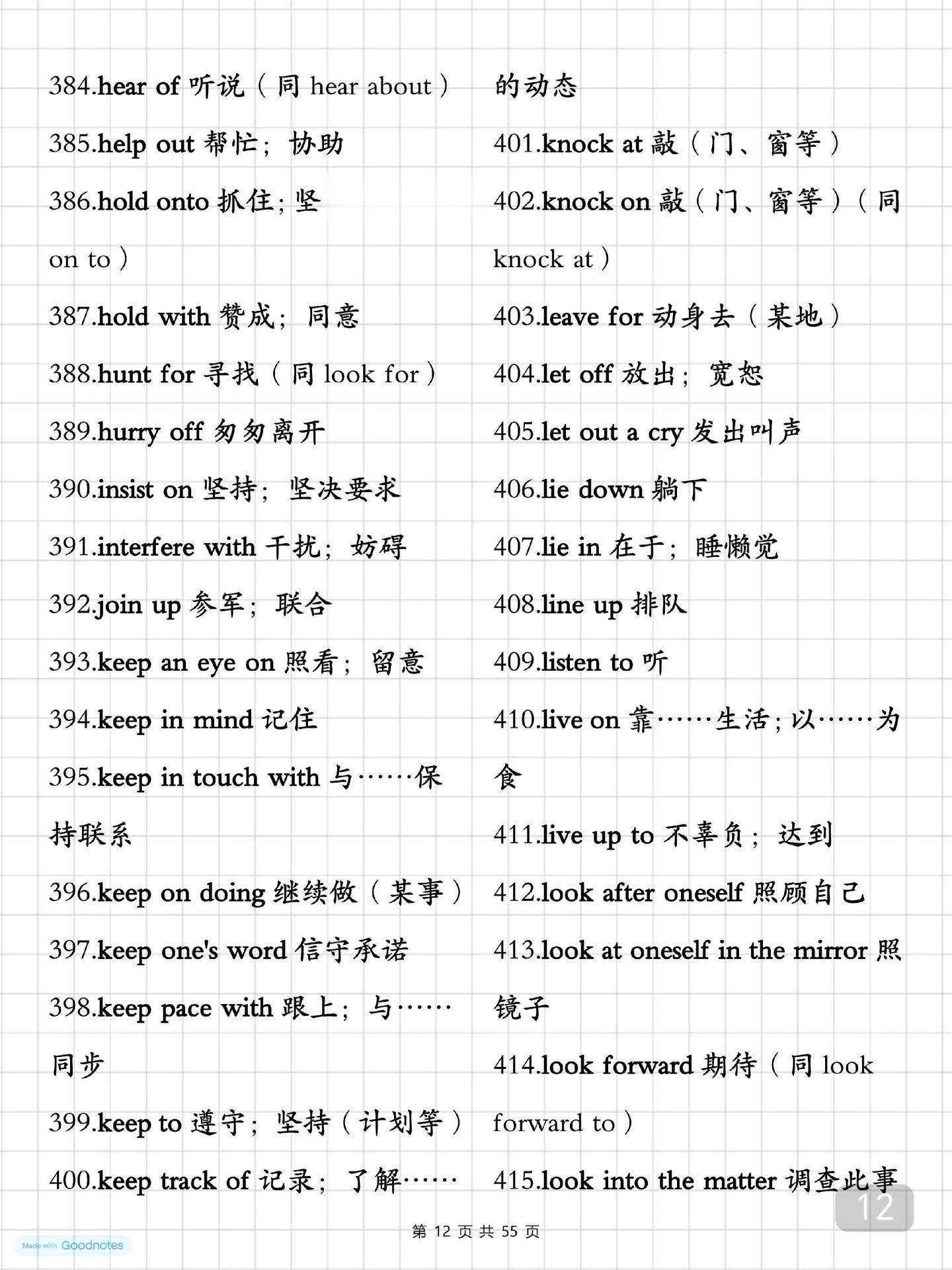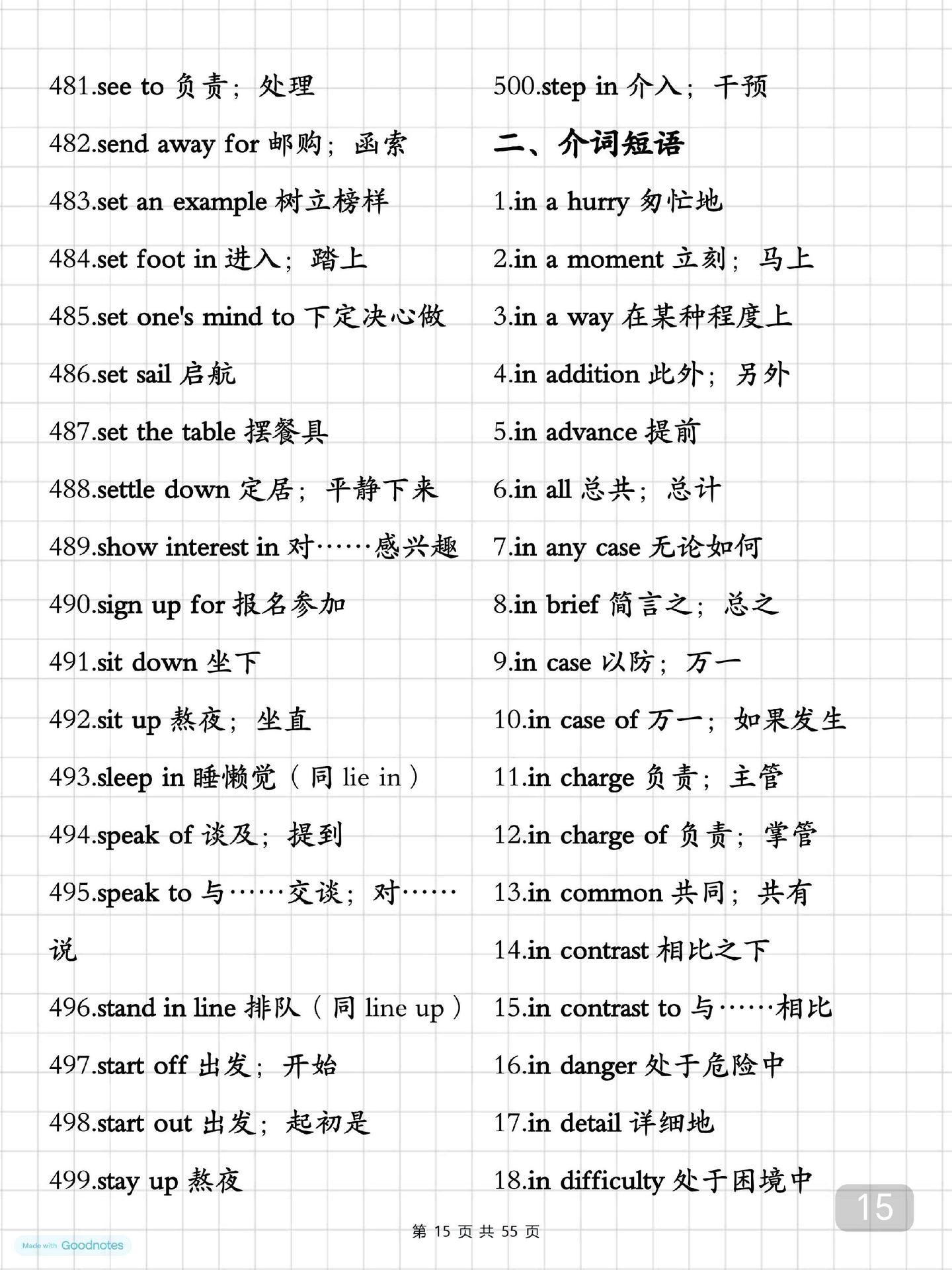 英语完形填空常考的1500个短语,基本要考的短语都在这里了,整理得非常详细,从现在开始,每天背诵20个,坚持两个多月就能全部记住,持之以恒,提升自己的英语成绩