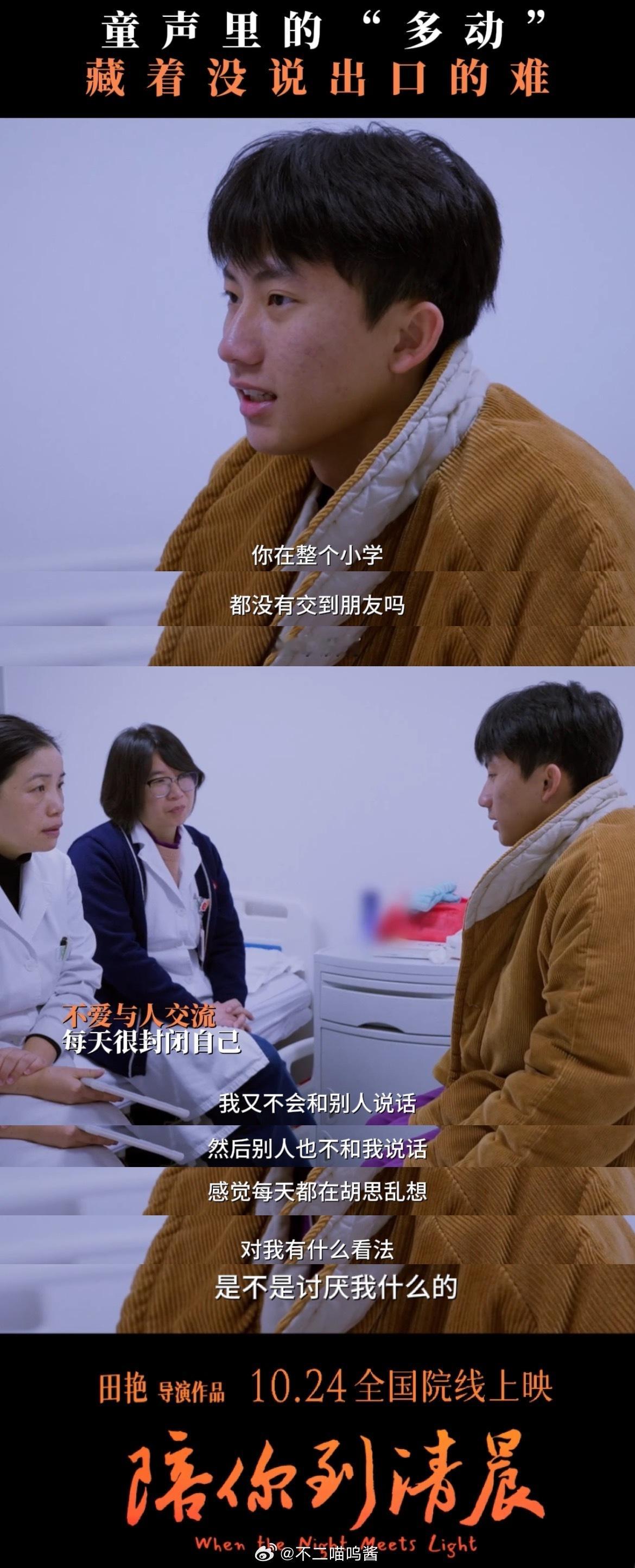 心理问题别让孩子独自扛 难得看到一部讲青少年心理健康的电影!电影《陪你到清晨》作为一部耗时六年打造的纪录电影,展示了一个孩子的自救与他救,一个患者与精神科医生的双向奔赴,以及一个父亲的成长,带大家真切了解青少年心理健康应该怎么关注,也学会更好地对待他们,心理问题别让孩子自己扛,走进他们,倾听他们,共同迎接有无限希望的清晨!电影陪你到清晨