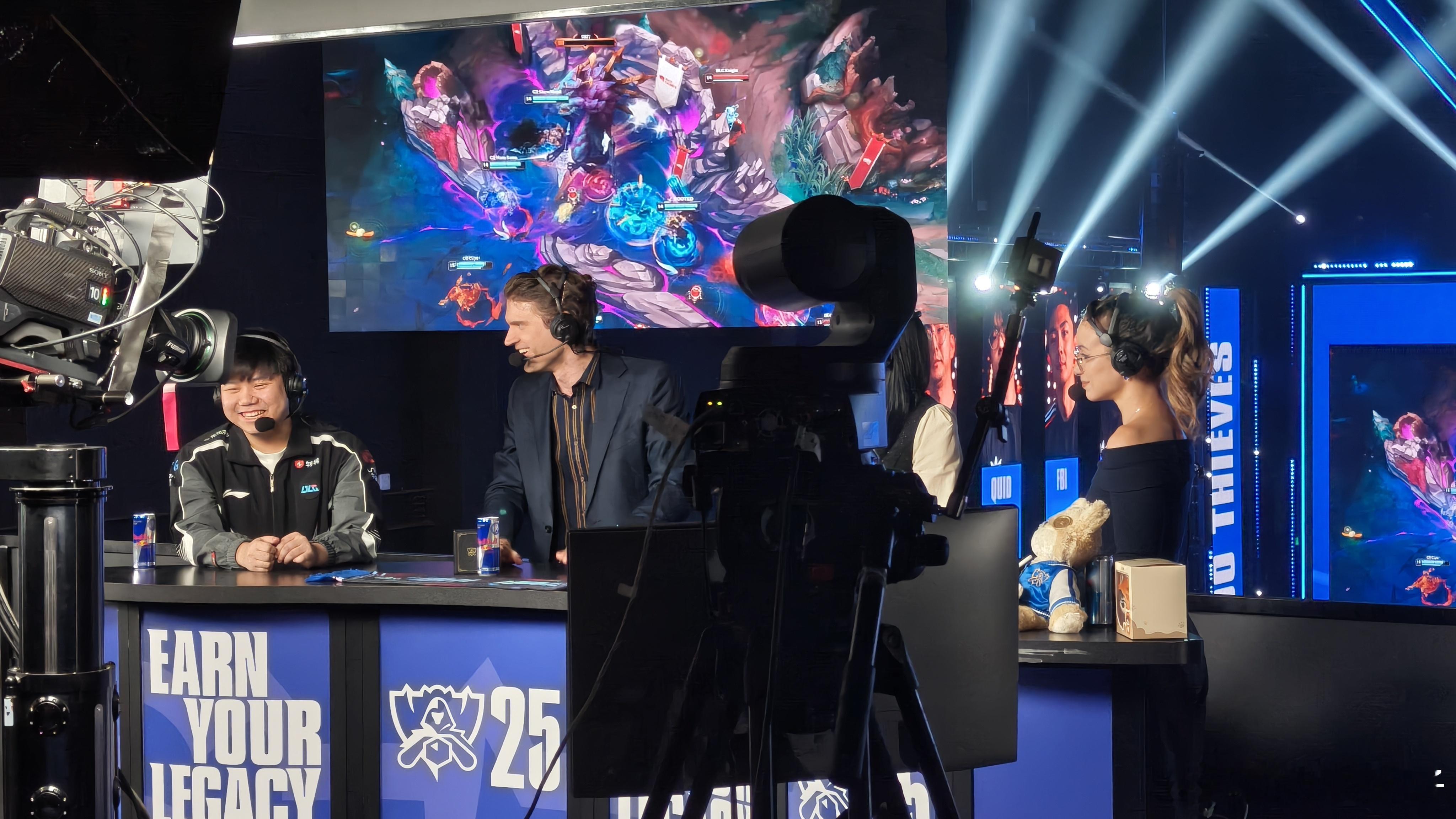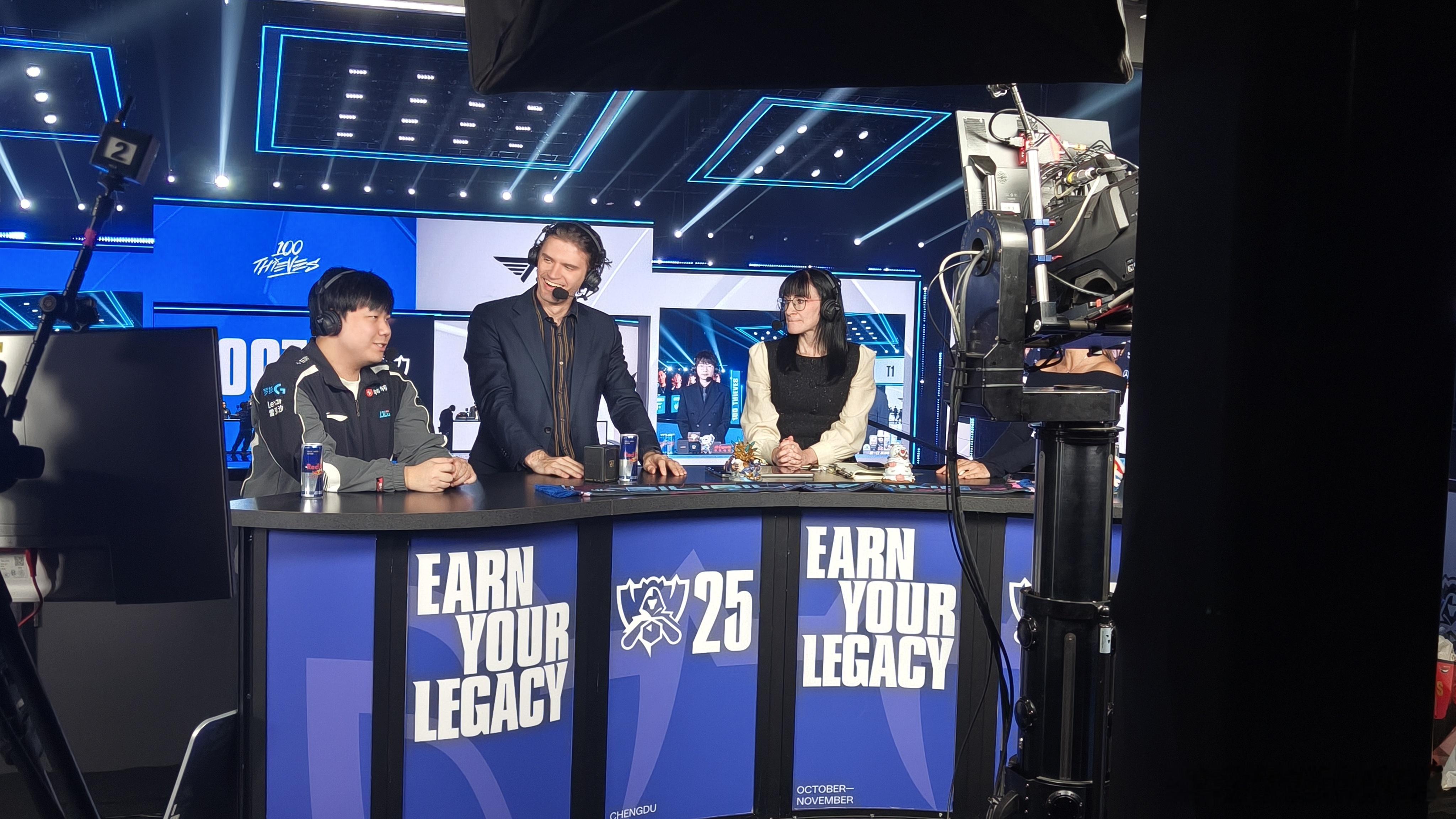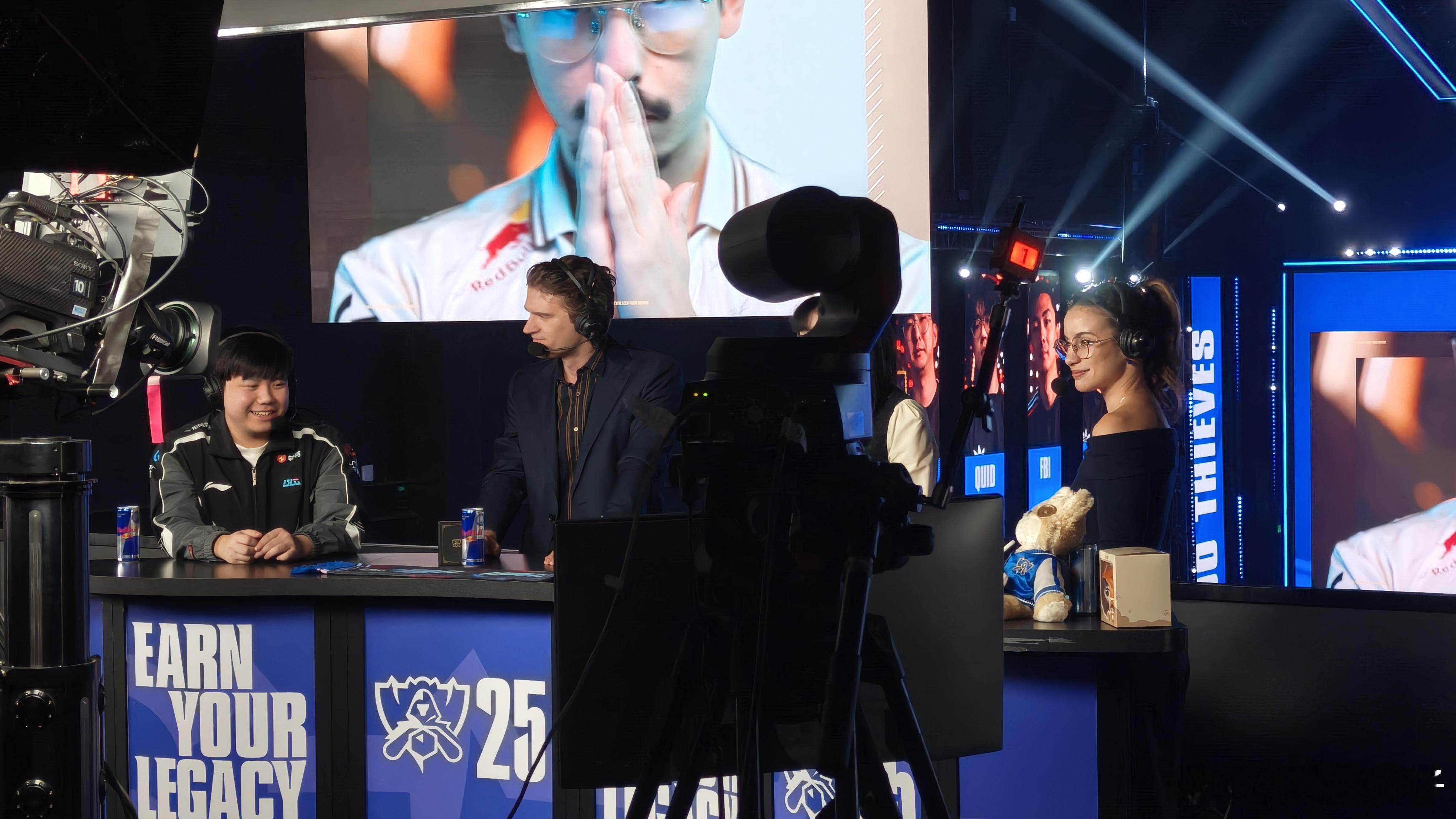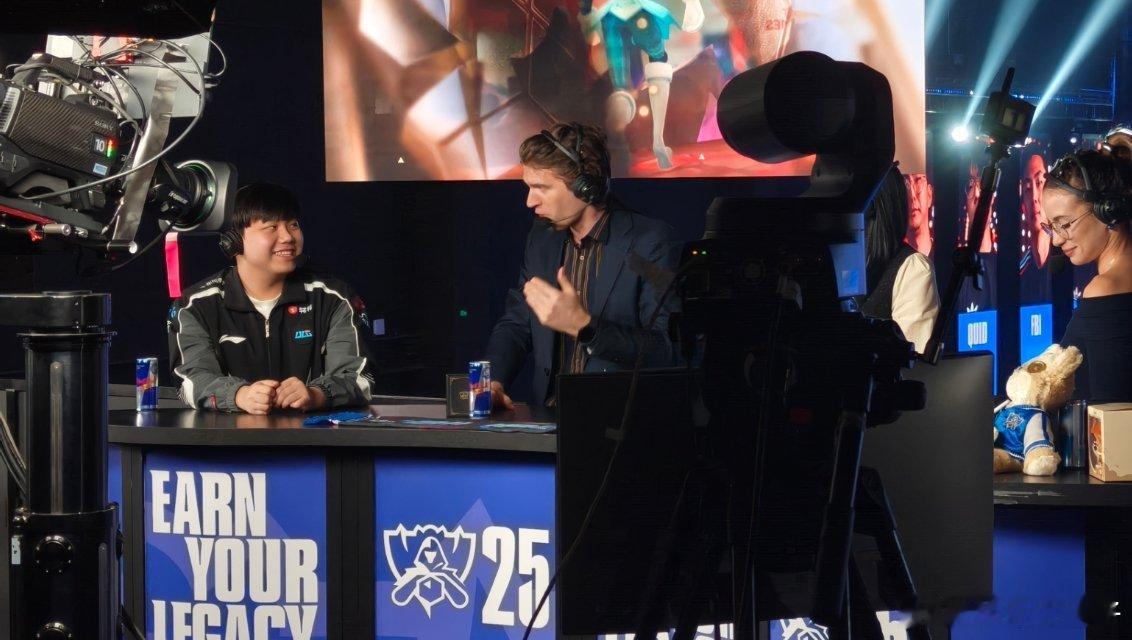 Shad0w来到英文流评论席接受采访,BLG偷家取胜打赢第一场生死战,哥们笑得挺开心。blg战胜vksbin哥偷家s15第一线英雄联盟[超话]