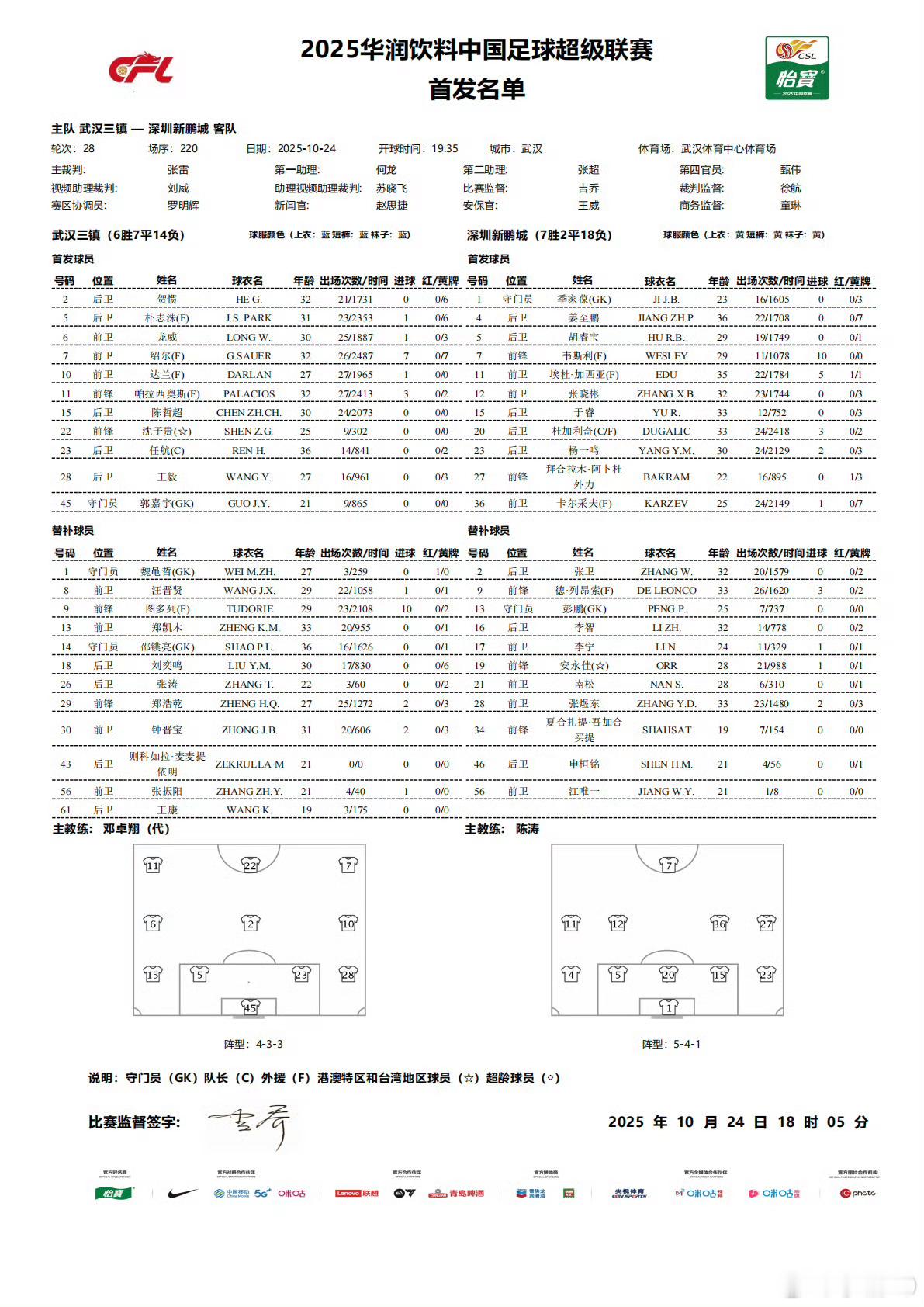 今天开始中超进入第28轮,持续到26号结束。