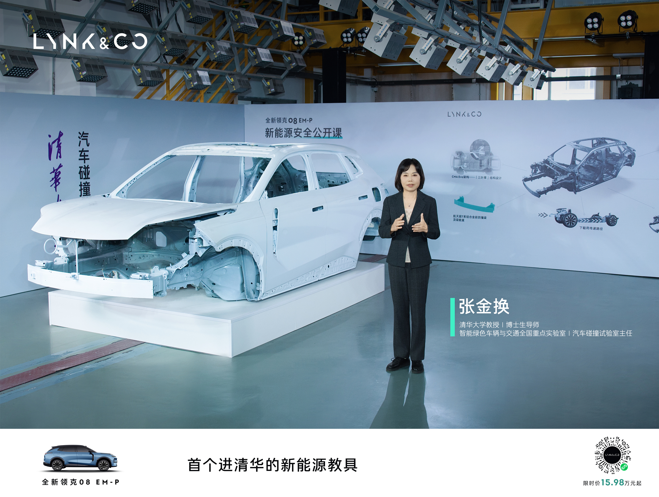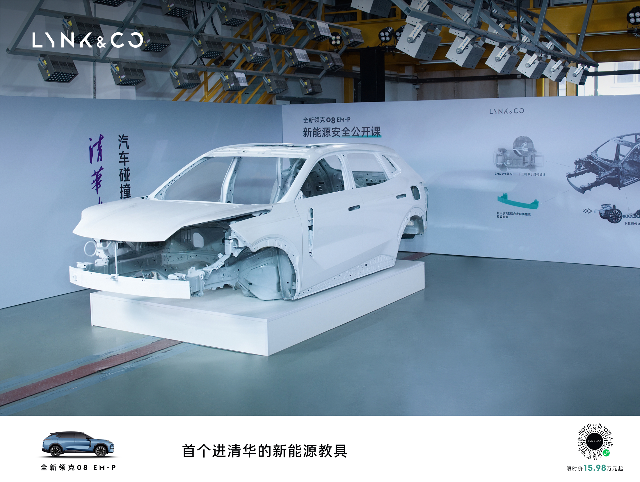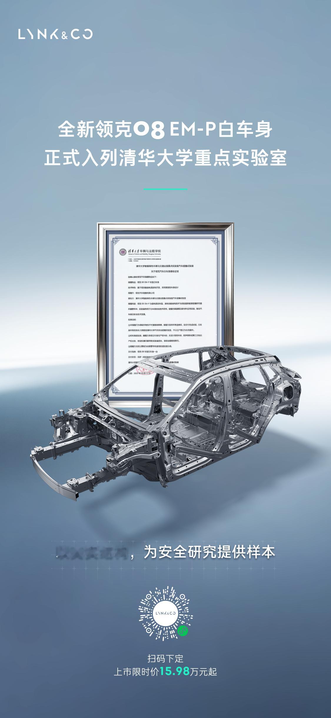 最近向宽又整了个大活——全新领克 08 EM-P 的白车身交付给了清华大学汽车碰撞实验室,作为汽车安全课的教具!