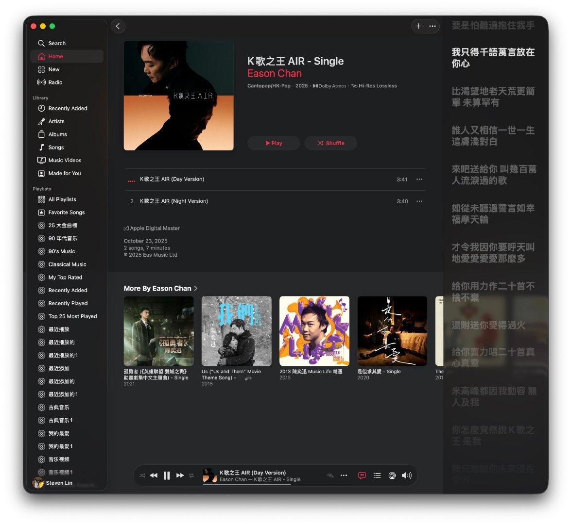 刚接音响听了重录的《K歌之王》。这版编曲和录音,令人动容。