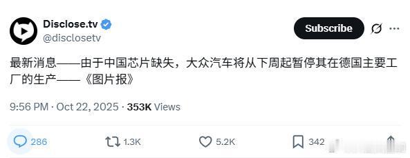 大公文汇网转载德媒报道:由于芯片缺失,大众汽车将从下周起暂停在德国主要工厂的生产。中国日报欧盟分社社长陈卫华评论道:感谢鲁莽的荷兰政府。主要是阿斯麦的垄断地位,让荷兰政府有点飘起来。但飘了这么久,梦应该醒~