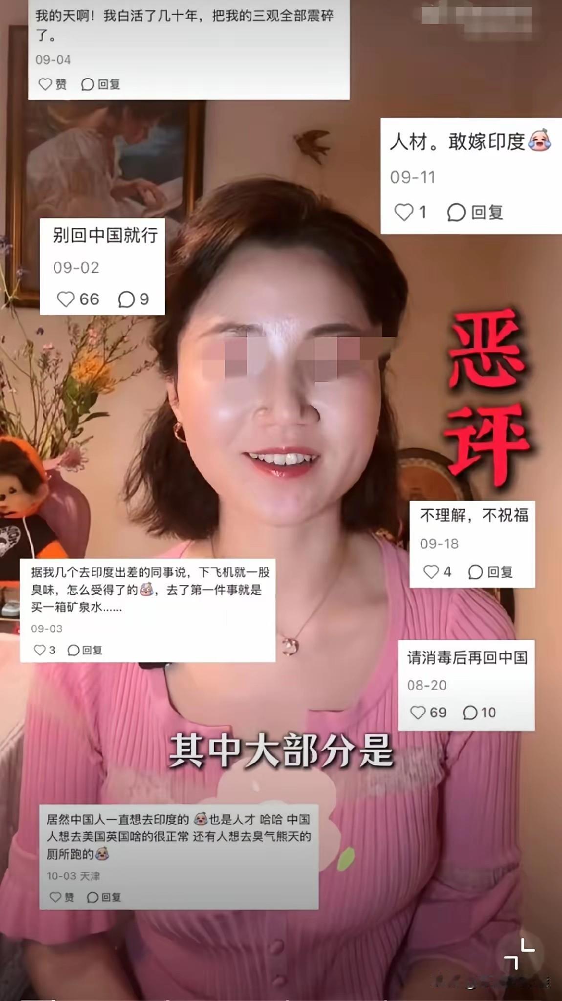 三嫂现在估计肠子都悔青了! 她后悔的不是嫁给印度人,也不是晒视频招来骂声,而是明明想炫耀豁达,却暴露了内心的拧巴。她晒出“井底噪音”的评论,又强调自己“内心丰盈”,像极了吵架后偷偷翻旧账的人,表面说不在乎,手指却把屏幕划得咔咔响。 她以为嫁的是一个人,却忘了背后是一个社会。印度女性面临的困境并非虚构,从医院女医生遭侵害到游客被骚扰,新闻里桩桩件件都带着现实的重量。而三嫂的“星辰大海”论,在那些真实挣扎面前,轻得像一粒沙。 最后那句“放弃外交官未婚夫”的炫耀,反而成了败笔。真正的独立不需要用头衔垫高自己,何况她晒出的繁体字与英文名,早已暴露了想割裂又渴望认同的撕裂感。与其在评论区较劲,不如踏实在异国生活。婚姻如饮水,冷暖自知,但若只许别人捧场,听不得半点杂音,那井底的人究竟是谁?