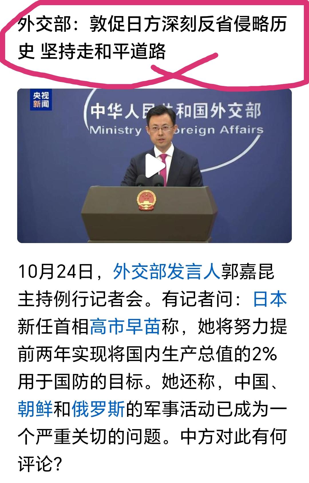 日本记者问外交部发言人,搞事早苗当选首相中国为啥没有致贺电?这不,“贺电”来了。 外交部发言人郭嘉昆说:敦促日方深刻反省侵略历史,坚持走和平道路。 就是不知道搞事早苗看到这封贺电心情如何。得不到家长祝福的婚姻不会幸福,得不到父上认证的成绩为零。日本人应该知道这个道理,搞事早苗也应该知道。 点右上角关注我,我们一起去看这个魔幻的世界