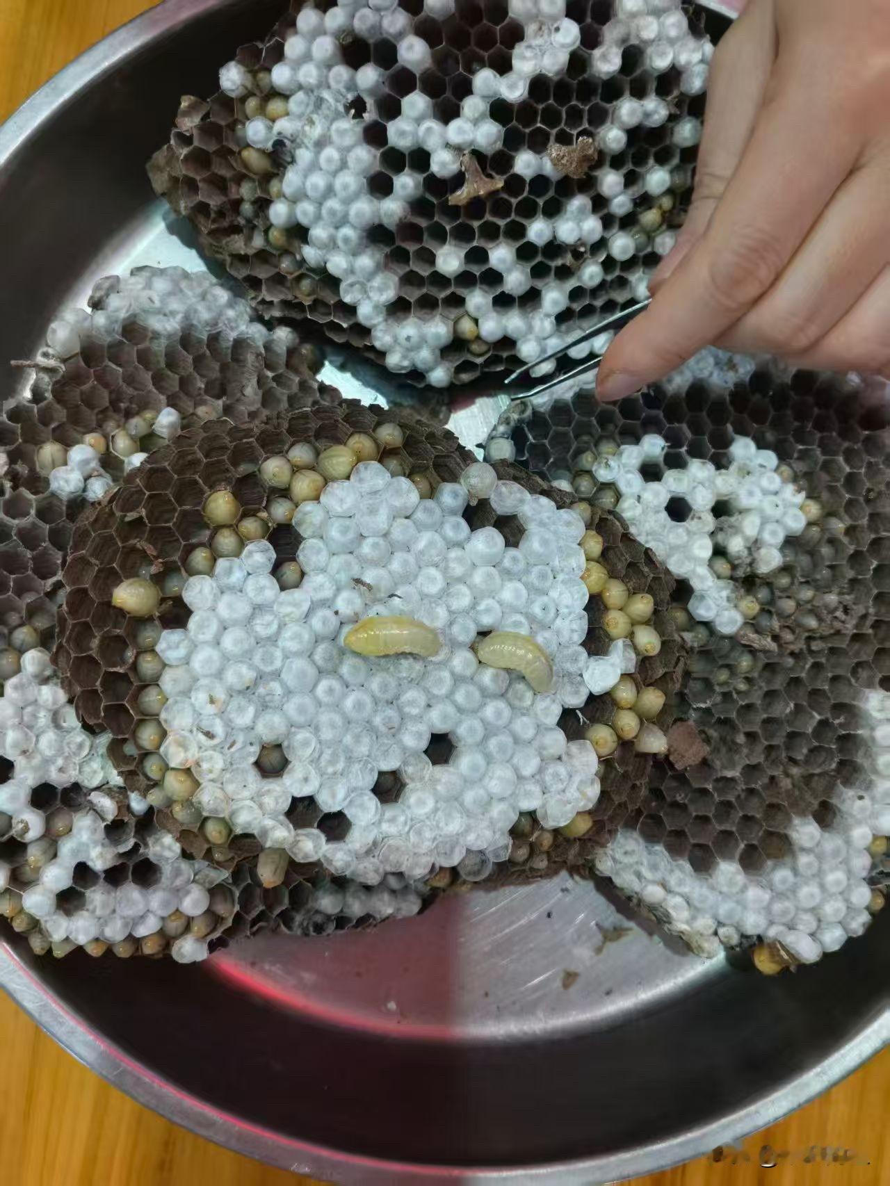 今天开盲盒!刚取的蜂蛹蜂巢,这满盘白胖胖的小家伙也太诱人了! 蜂巢格子里裹着嫩黄的蛹,手指一捏软乎乎,这可是咱这儿的“山野鲜货”——直接炸了香酥掉渣,煲粥鲜得能舔碗!以前看这虫虫还犯怵,现在见着就流口水,高蛋白吃着贼带劲,咬开那股嫩劲儿,比吃肉都爽! 这才是大自然的“隐藏菜单”,谁吃谁迷糊!你们有吃过吗?