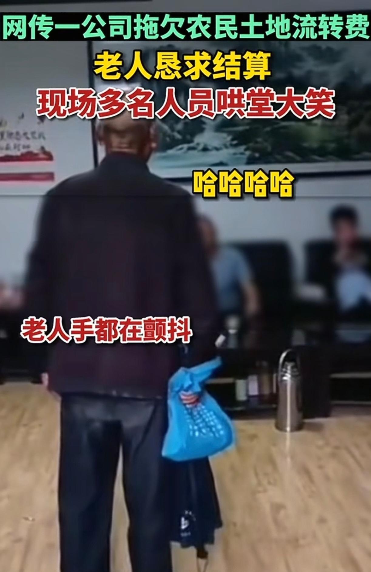刷到一22年的视频,看着真让人心酸。一老大爷,看起来应该七十多岁的样子,佝偻身体颤颤巍巍的去要土地承包费。几个算不上是人的工作人员,坐在椅子上,低头玩手机,对此置之不理。更让人心寒的一个看起来像是领导的人,嘴里喝着茶,看着大爷说完之后竟然哈哈大笑。 不懂,为啥会有这么丑陋的人。大爷气的手直发抖,怎么忍心哈哈大笑。难道是觉得自己是不会老吗,真不怕以后会遭报应呀。