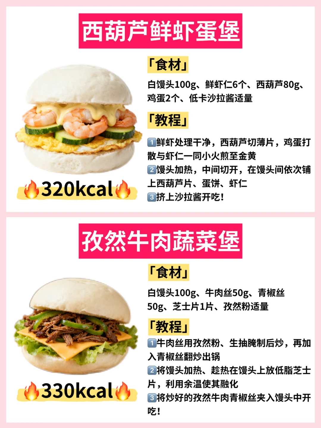 减脂期🔥6款低卡馒头堡‼️低卡饱腹✅附热量