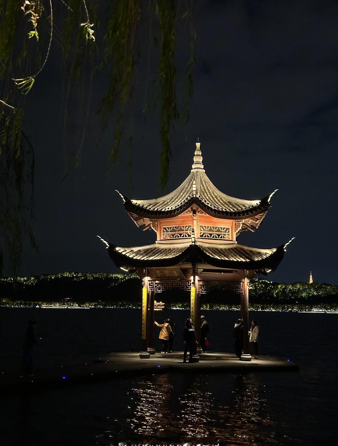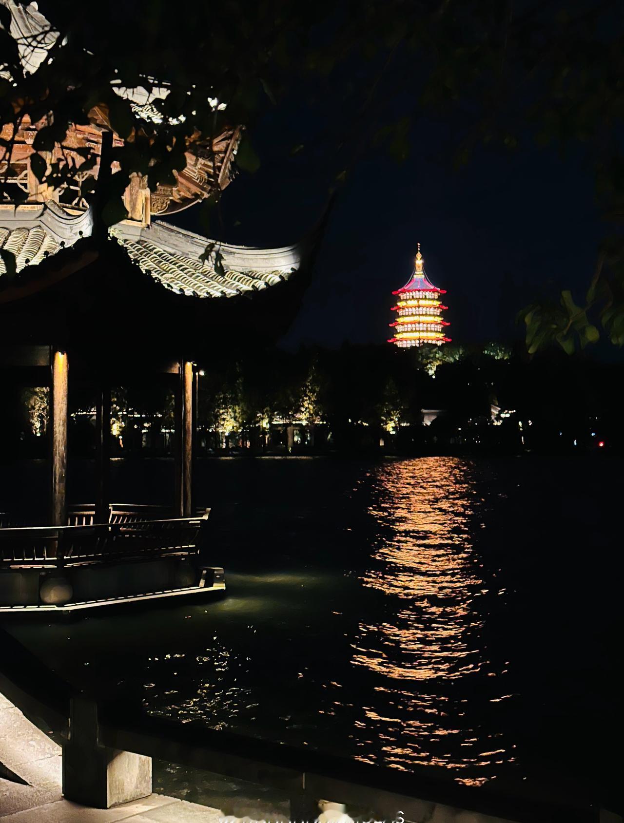 夜晚的西湖🎑 (都是原图直发 杭州西湖杭州西湖夜景美到让人心头一紧雷峰塔唯美!航拍杭州雷峰塔夜景