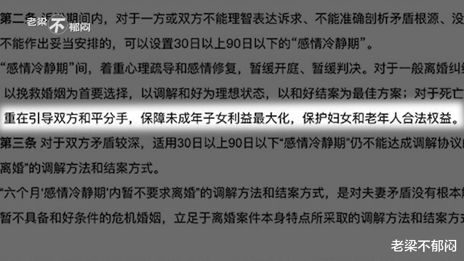 比如前边提到的贾汪区人民法院在最初的文件里就写明:对于死亡婚姻,设置30日以上90日以下“感情冷静期”,重在引导双方和平分手,保障未成年子女利益最大化,保护妇女和老年人合法权益,感觉就是不保护我这样的男性啊。