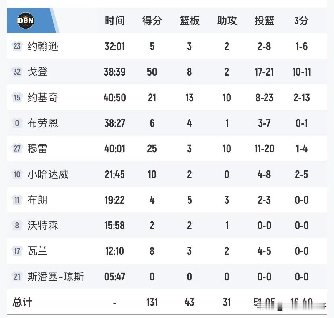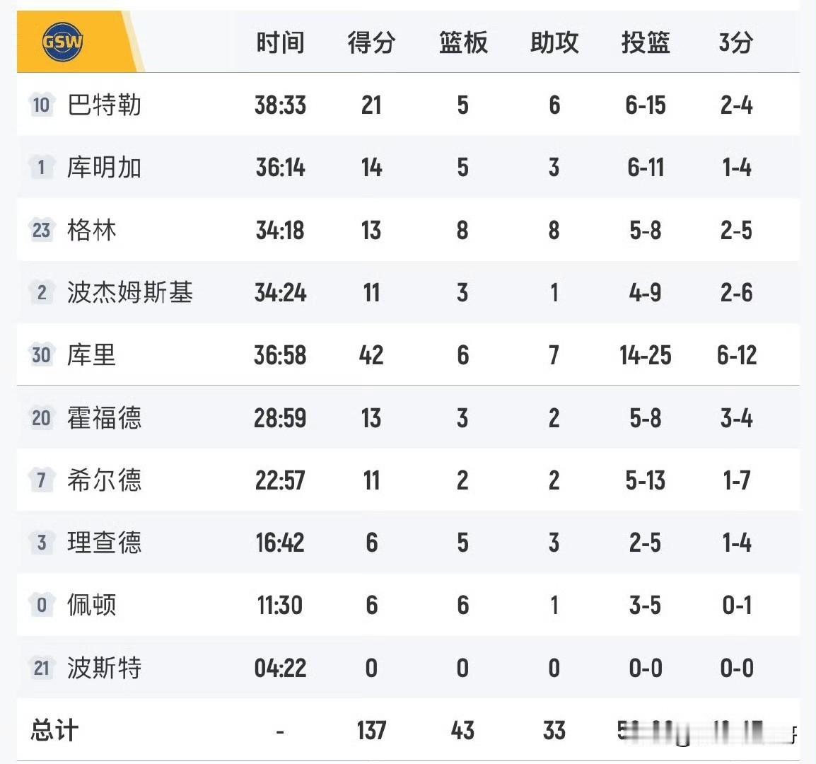 他真的比小波特强???看看卡梅隆-约翰逊,再看看霍福德! 掘金输球最大的罪人就莫过于卡梅隆-约翰逊了吧,休赛期他来到掘金,都以为是完美替代小波特的最佳人选,没想到啊,没想到! 看看他的表现,打了32分钟得5分,三分6中1,名副其实的铁王……好在他没有占很多球权,首发约基奇、穆雷和戈登发挥都没有问题,就只有老黄忠背锅了。 再看看对面的老霍福德,替补出场29分钟得13分,三分4中3,只能说勇士选对人了,霍福德首秀就给主场球迷惊呆了,早能得到他该多好啊! 老黄忠的水土不服和霍福德的即插即用形成了鲜明的对比,勇士今天还有背靠背的比赛,霍福德估计就歇了。