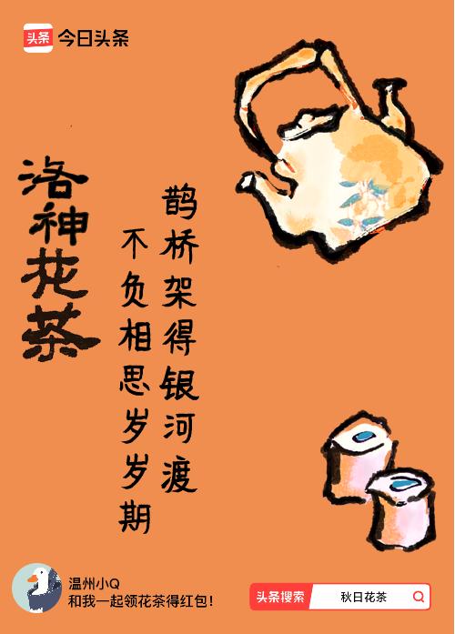 秋日领花茶我领到了秋日限定花茶:鹊桥架得银河渡,不负相思岁岁期,戳这里👉快来领取你的专属花茶,分2万元奖金!