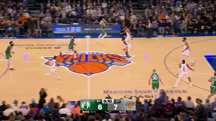 凯尔特人超级球星杰伦-布朗实在是嚣张至极!在今天凯尔特人客场挑战尼克斯的焦点战中,当时比赛进行到了第一节的九分多钟,布朗在面对防守专家阿奴诺比的严防死守毫不畏惧,只见布朗持球强突阿奴诺比最后完成了一记难度极高的上篮,还造成了对手的犯规。 这就是布朗超强的突破能力,当他冲起来的时候他就像一头野兽。