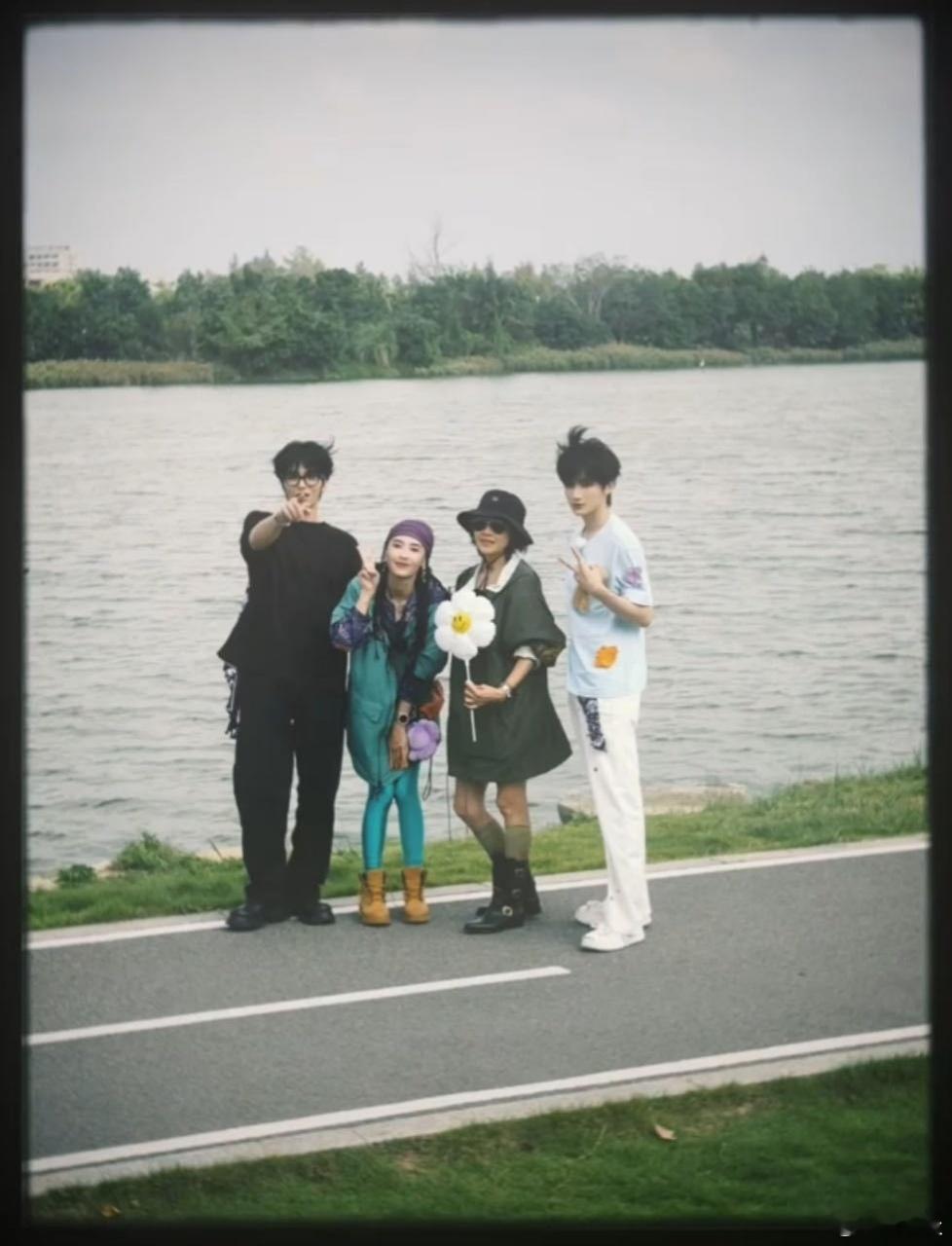 张天爱跟素人合影,胯真的好宽,大宅院似的