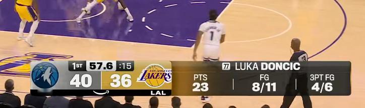 湖人第一节36分,东契奇一个人干了23分(12中8),然而球队还落后4分。