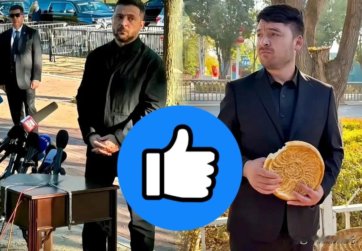 “跨国撞脸”太绝了!乌克兰总统和新疆馕小哥竟是“双胞胎”? 第一眼看到差点以为是AI换脸恶作剧!再仔细看原来左边是乌克兰总统泽连斯基,正皱着眉面对一堆话筒,一看就为国家大事愁得慌;右边是新疆卖馕的小哥,手里捧着个大馕,那表情也透着股“今天这馕咋才能多卖几个”的忧愁。 这俩人除了职业天差地别,脸和神态却像一个模子刻的!一个操心国家局势,一个操心馕的销量,虽然愁的事儿不一样,但这“撞脸”的巧合也太绝了。 网友们看完都乐疯了,有人调侃“这是跨国分斯基吧”,还有人说“建议俩人联动一下,泽连斯基帮着卖馕,馕小哥帮着处理外交,说不定都能峰回路转”。 不得不说,世界真小,缘分真妙,这波“撞脸”算是把地球村的奇妙给体现得明明白白了![捂脸][捂脸][捂脸]