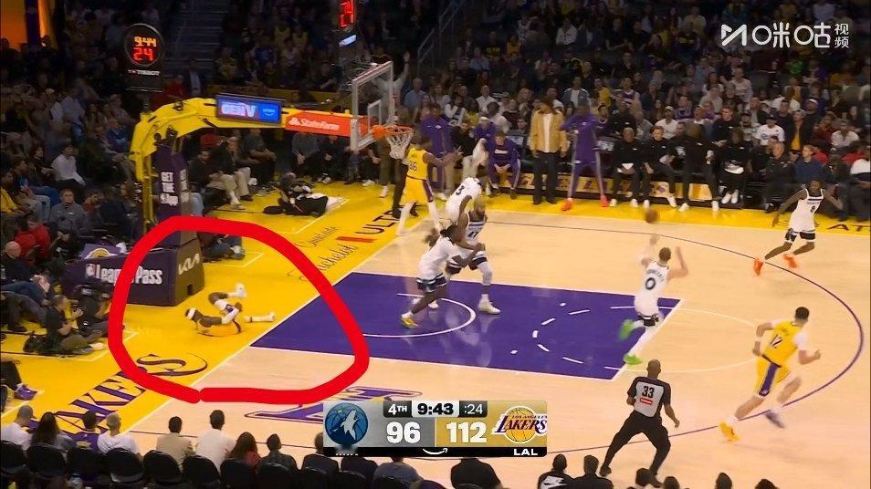 彪哥因为上一个回合受到撞击,有点没缓过来,没有及时回防就在湖人还在四打五的时候,