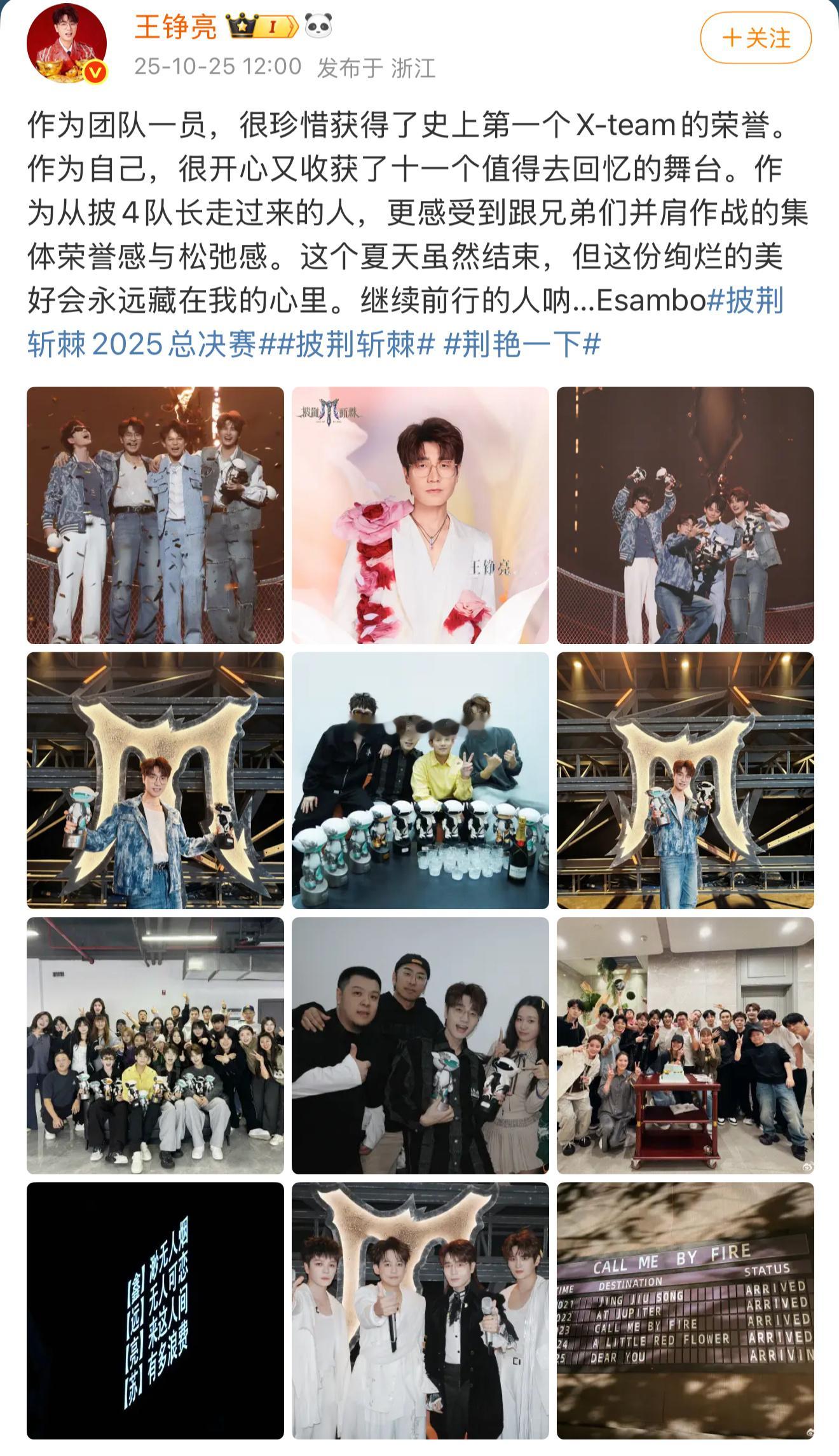 在披哥5中,王铮亮为我们带来了11个让人难忘的舞台,也贡献了无数个烂梗!同时,他也收获了X-TEAM和X-MEN两项大奖~在文字中,他还提到了自己是从披4队长走过来的人,原来这一切已经过去一年了!从披4到披5亮哥给我们带来的绚烂的美好,也会永远藏在我们心里~~~
