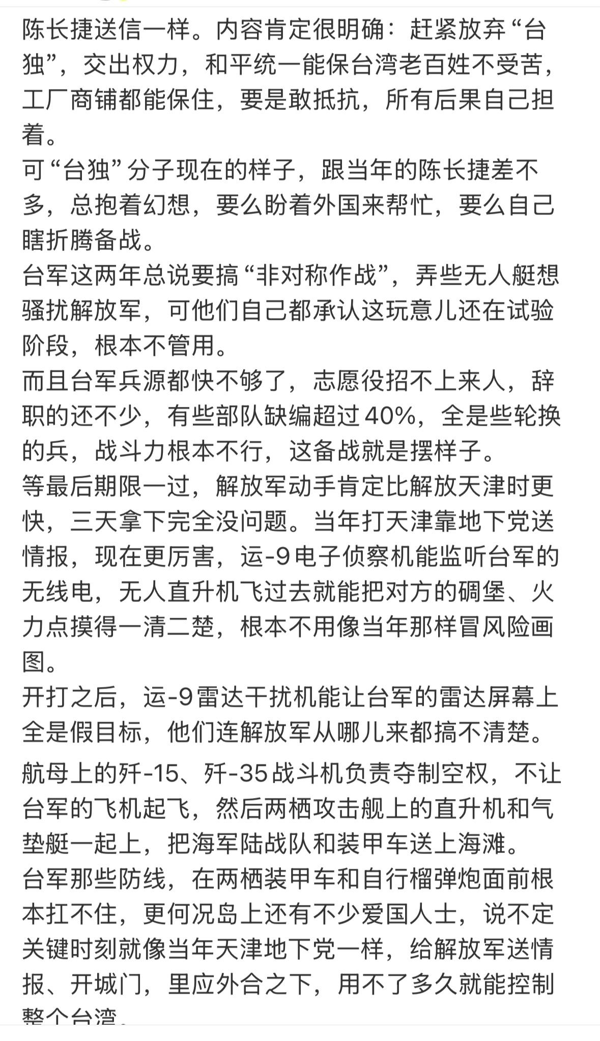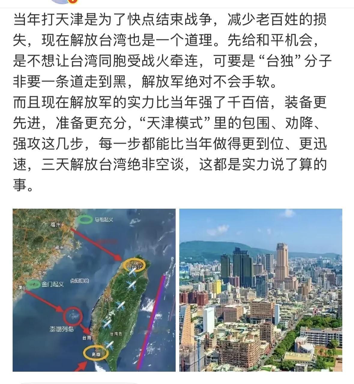 国外反华势力,不断制造“中国威胁论”,散步“2027年攻台”的谣言,扬言对中国实行制裁,对中国进行威胁,国内有一部分人,紧紧配合美西方的反华舆论,编造一些虚假信息,诋毁国家对台大政方针,以低级红高级黑的方式,攻击“九二共识”、“和平统一”的基本国策,大家应该提高警惕,有关部门应该采取措施,坚决进行打击!这里面有些就是“台独分子”故意制造混乱,也有一些人,根本不懂两岸政策,跟着瞎嚷嚷。