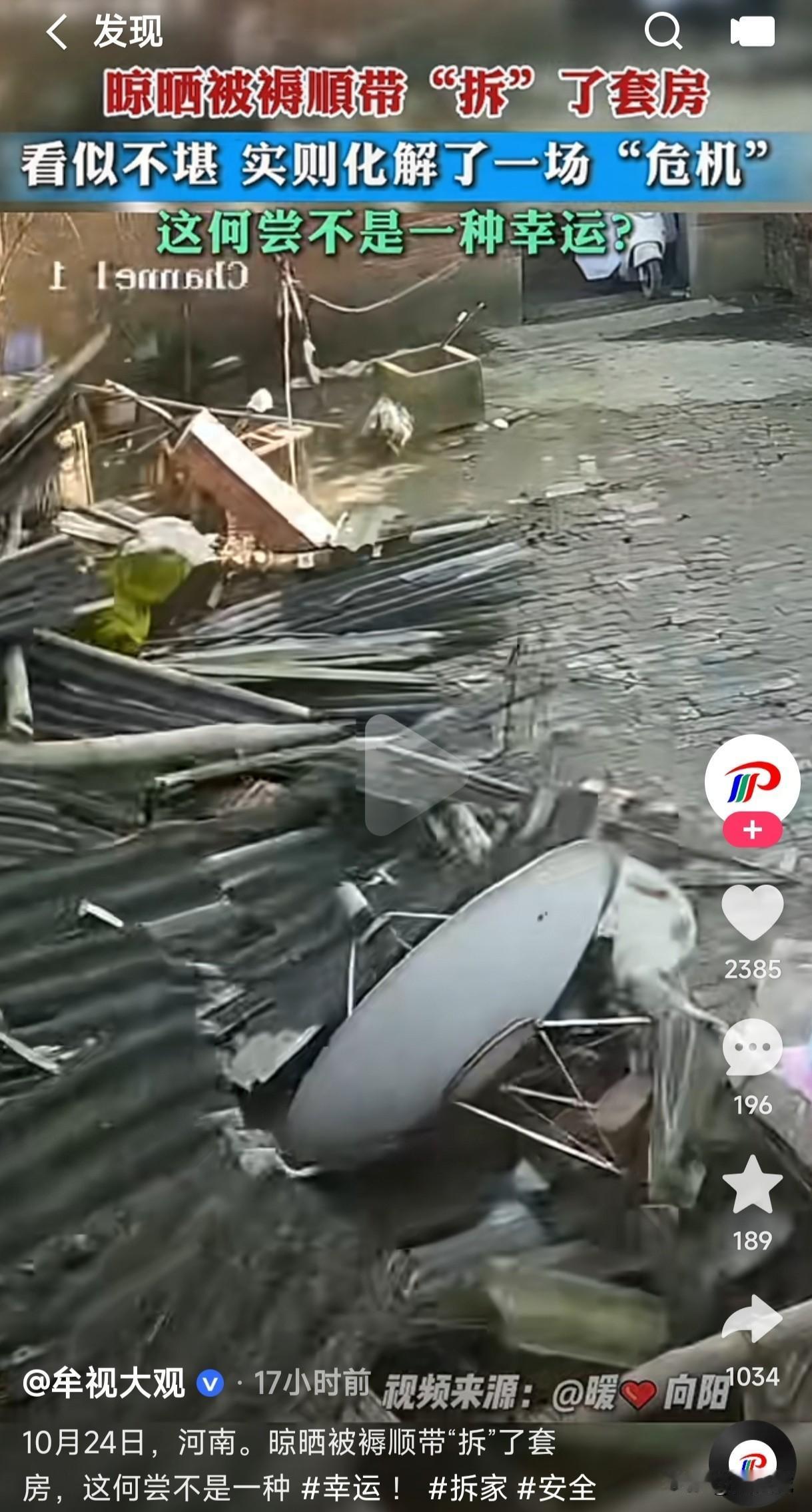 女子晾晒被褥时竟然顺带把房拆了,这看似不起眼的操作,实则是挽救了一场危机,真是不