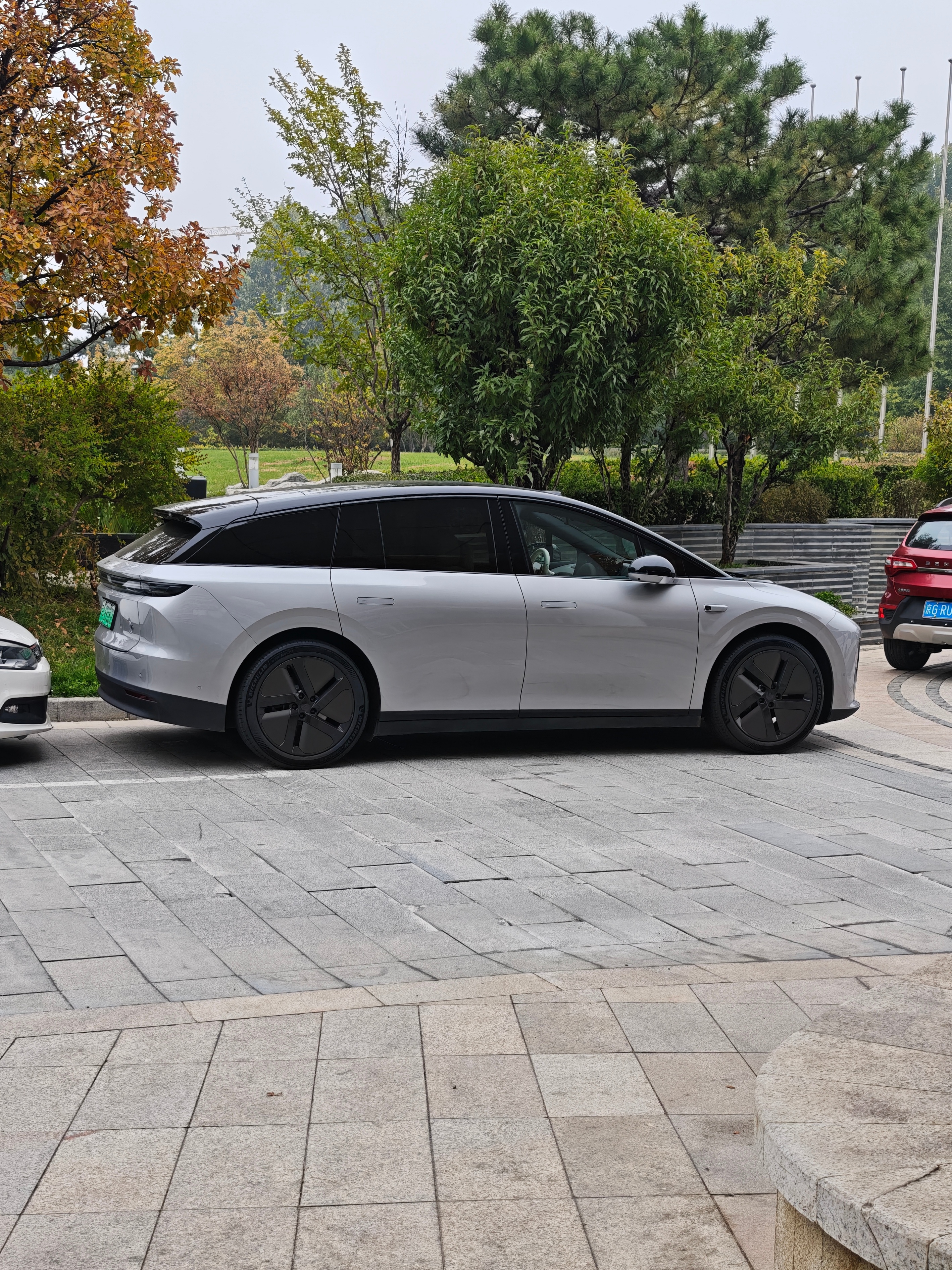 路遇银色理想i6,这款标配的20英寸低风阻轮圈比我想象中好看很多