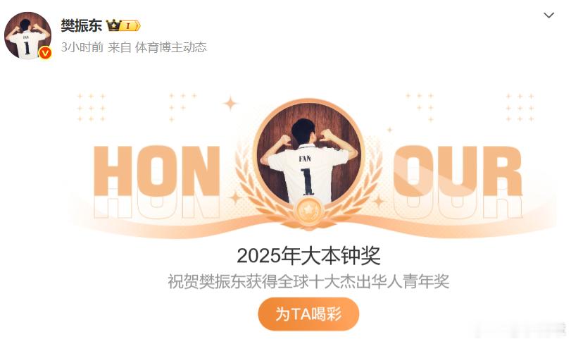 祝贺樊振东获得全球十大杰出华人青年奖到达顶峰的人会看见下一座高山。但令