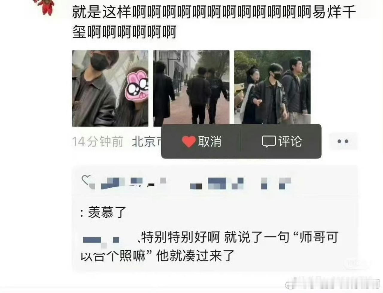 一句“师哥”解锁的合照奇迹 上周在活动后台碰着易烊千玺,脑子一热喊了声“师哥,能合照吗?” 本来没抱希望,结果他刚结束采访,随手把麦递给工作人员,就笑着凑过来了。肩膀离得特别近,还提醒我“手机举高点显脸小”,快门按下去那秒,周围的起哄声我都听不清了。 现在看照片还心跳加速,谁懂啊!一句礼貌的称呼,换来了最温柔的回应!