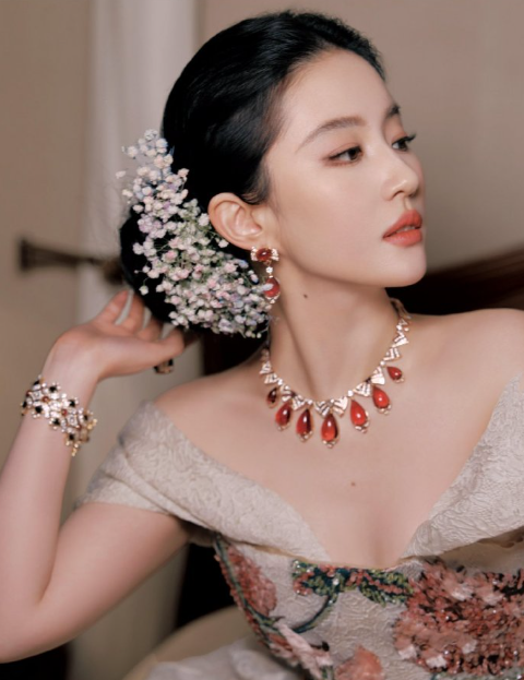 刘亦菲美得我以为后面的满天星是珠宝哈哈 宝格丽CEO真的很喜欢她,虽然神仙姐姐每次戴的宝格丽珠宝都会自动上演珠宝消失术
